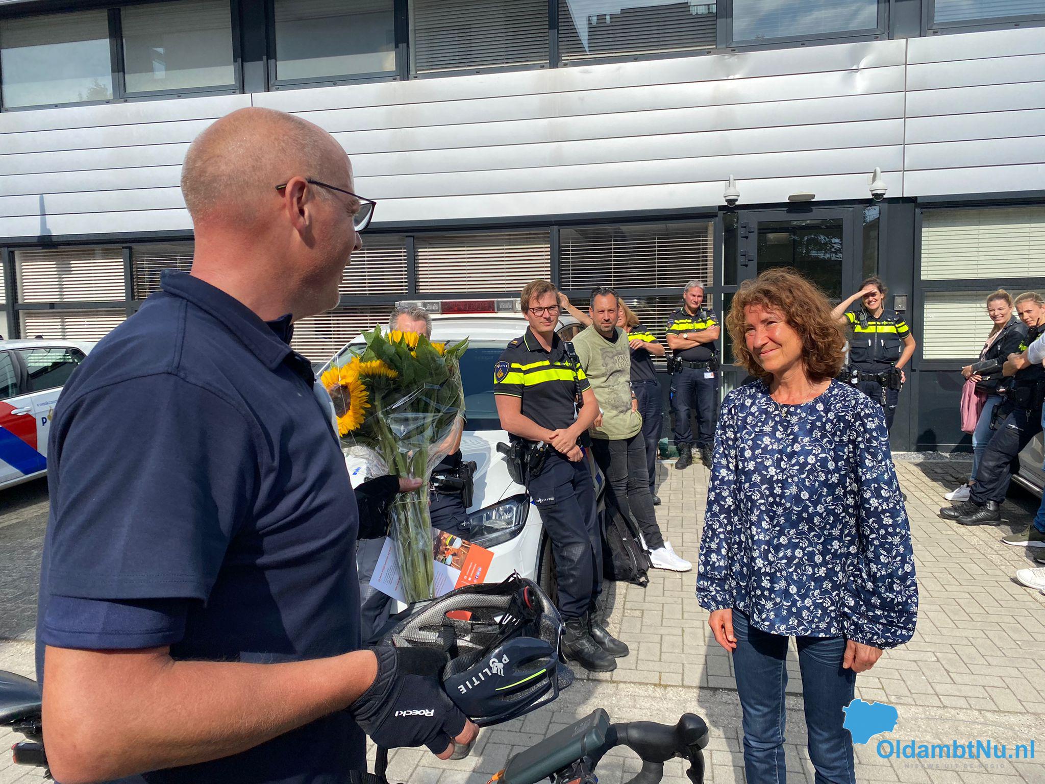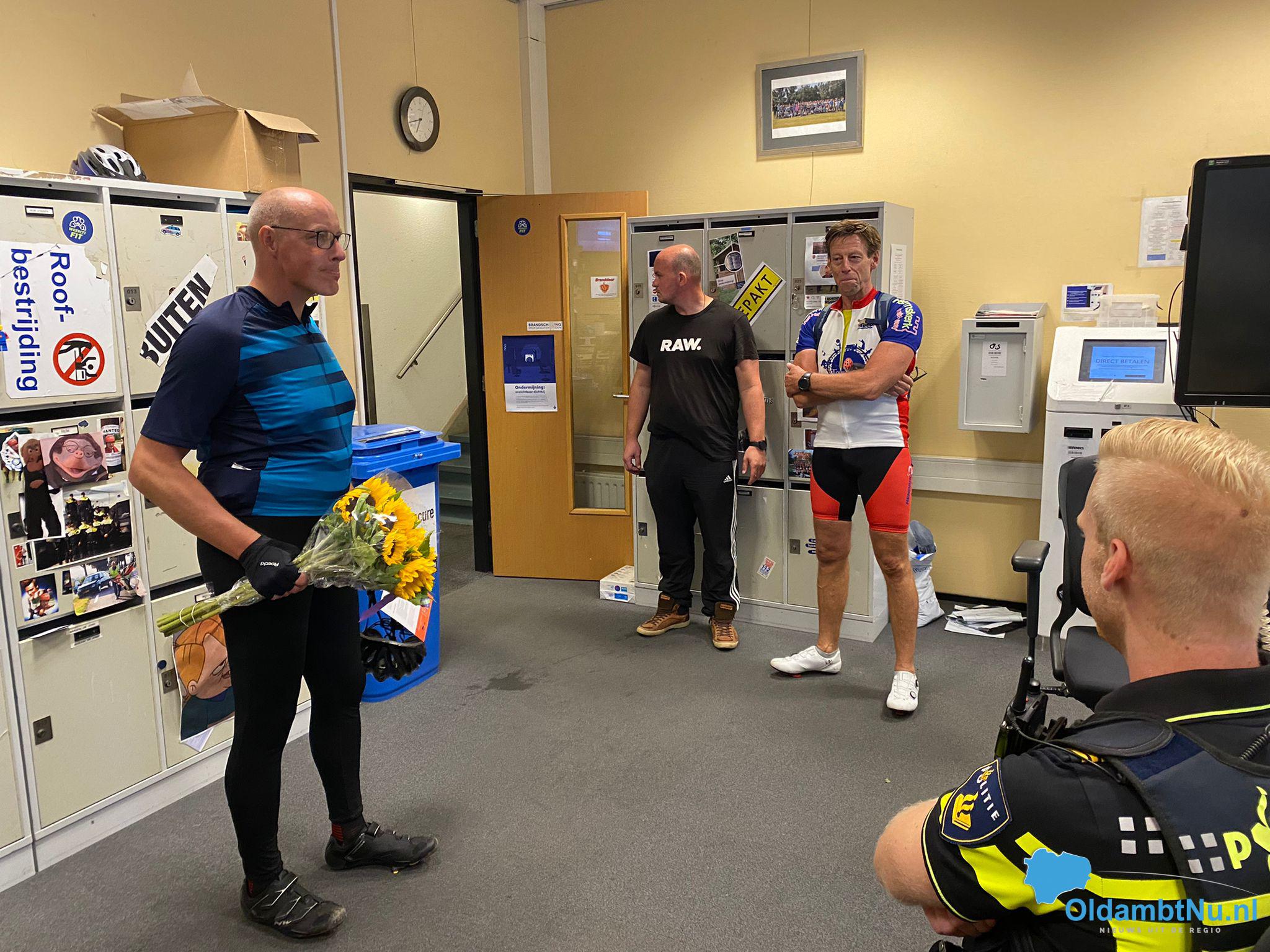 “Vanaf Den Oever stond ik er alleen voor om het volgende bureau in Hoorn te bezoeken. Twee collega’s van dat team fietsten in uniform de laatste 2 kilometer mee en was daar weer een waanzinnig onthaal en een rijk gedekte tafel vol gezonde lekkernij. Weer kon ik daar een mooie bos zonnebloemen overhandigen.”