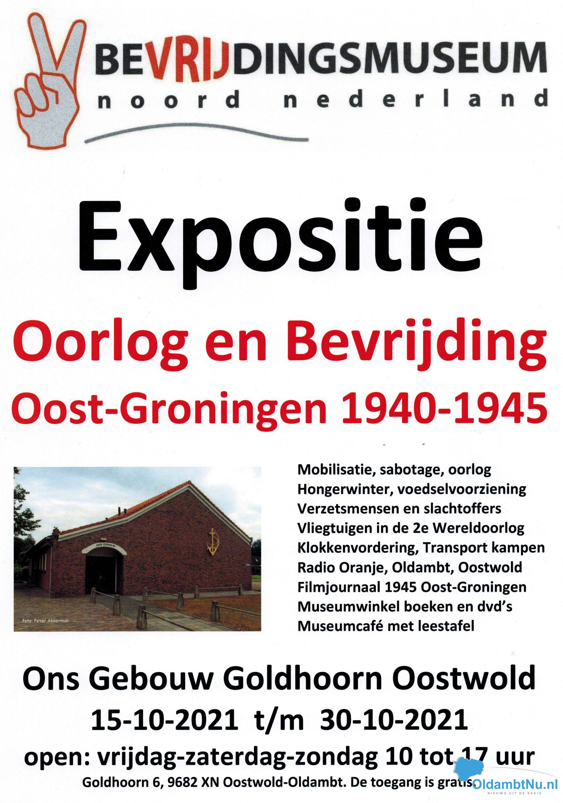 In ‘Ons Gebouw’ aan de Goldhoorn 6 in Oostwold-Oldambt is dan een fraaie expositie ingericht met foto’s, verhalen en toelichting, films en voorwerpen over de gebeurtenissen in Oost Groningen in de jaren 1940-1945. In de presentaties is aandacht voor de gebeurtenissen tijdens de oorlog en de bevrijding van Oostwold, Midwolda, de omliggende dorpen, de polders, de Gemeente Oldambt en Oost-Groningen in de jaren 1940-1945.