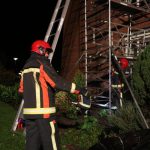 Brandweer Scheemda kwam even na middernacht ter plekke en heeft besloten om de steiger in zijn volledigheid te verwijderen. Dit omdat de steiger inclusief ladderlift dreigde om te vallen. De steiger werd gedemonteerd om erger te voorkomen.