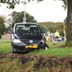 Auto komt tot stilstand tegen boom na aanrijding met busje