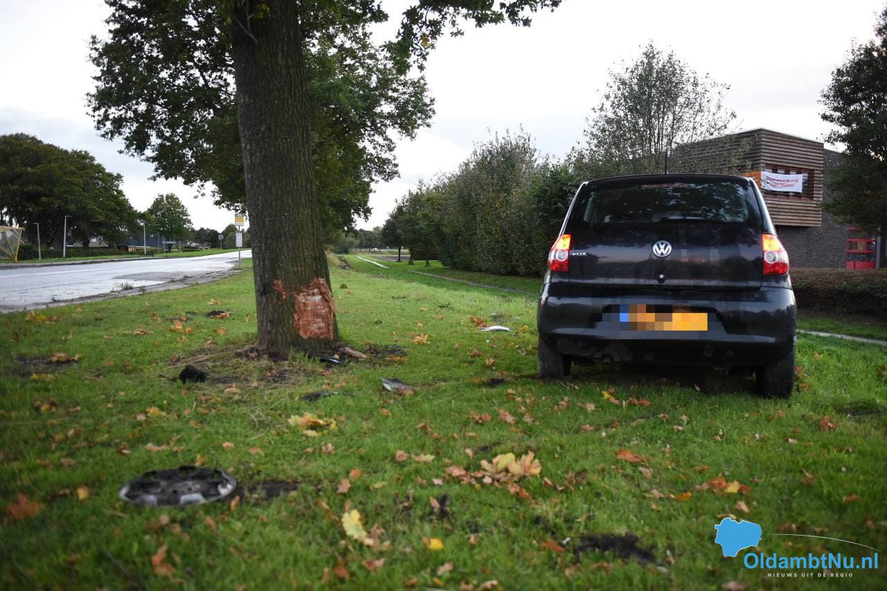 Auto komt tot stilstand tegen boom na aanrijding met busje