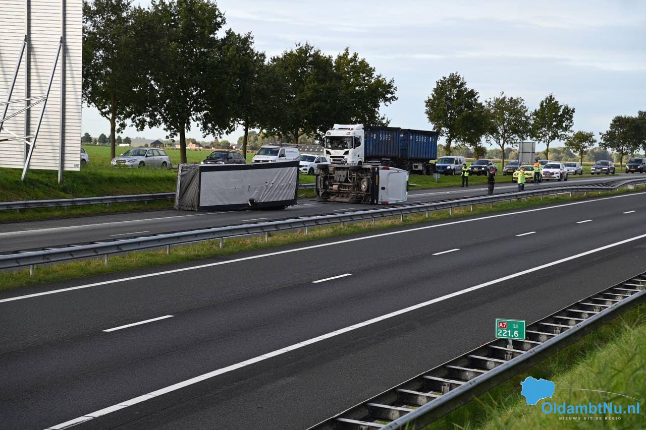 Zuidbroek – De A7 richting Winschoten is ter hoogte van Zuidbroek afgesloten. Dit wegens een gekantelde bestelbus met trailer. Het verkeer kan het incident passeren via de op- en afrit. De hulpdiensten zijn ter plekke en de chauffeur wordt gecontroleerd door het ambulancepersoneel. Het is onduidelijk hoe het incident heeft plaats gevonden, de hulpverlening is gaande.