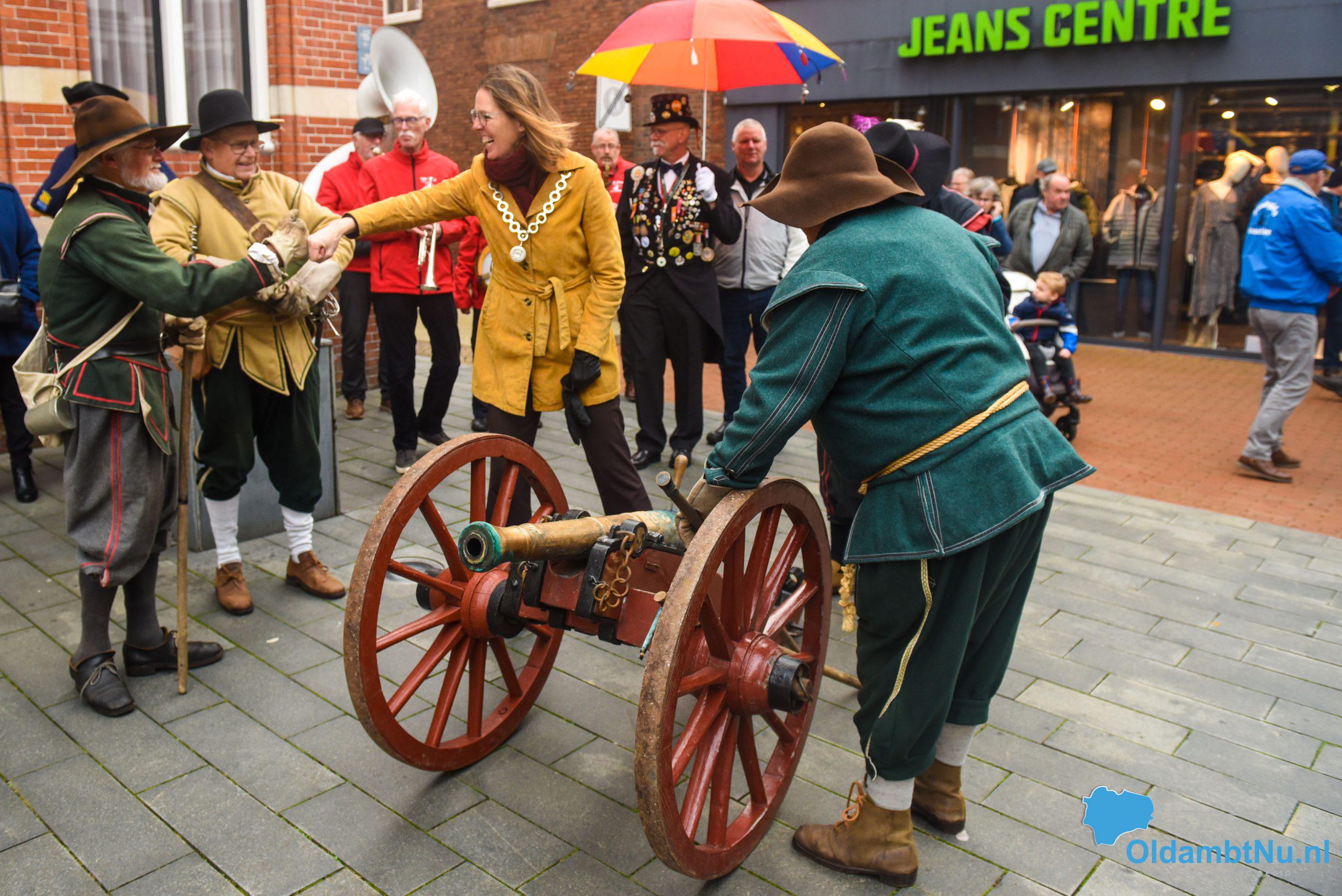 Winschoten – Burgemeester Cora-Yfke Sikkema hield voor aanvang van de Allerheiligenmarkt, of hier beter bekend Adrillen, een korte speech vanaf het bordes van het stadhuis. Een warm welkom was er ook voor de plaatsvervangend burgmeester Helmut Geuken van het Duitse Weener en burgemeester Jaap Kuin van gemeente Pekela. Met een daverend kanonschot werd om 10.00 uur de grootste jaarmarkt van de provincie geopend.