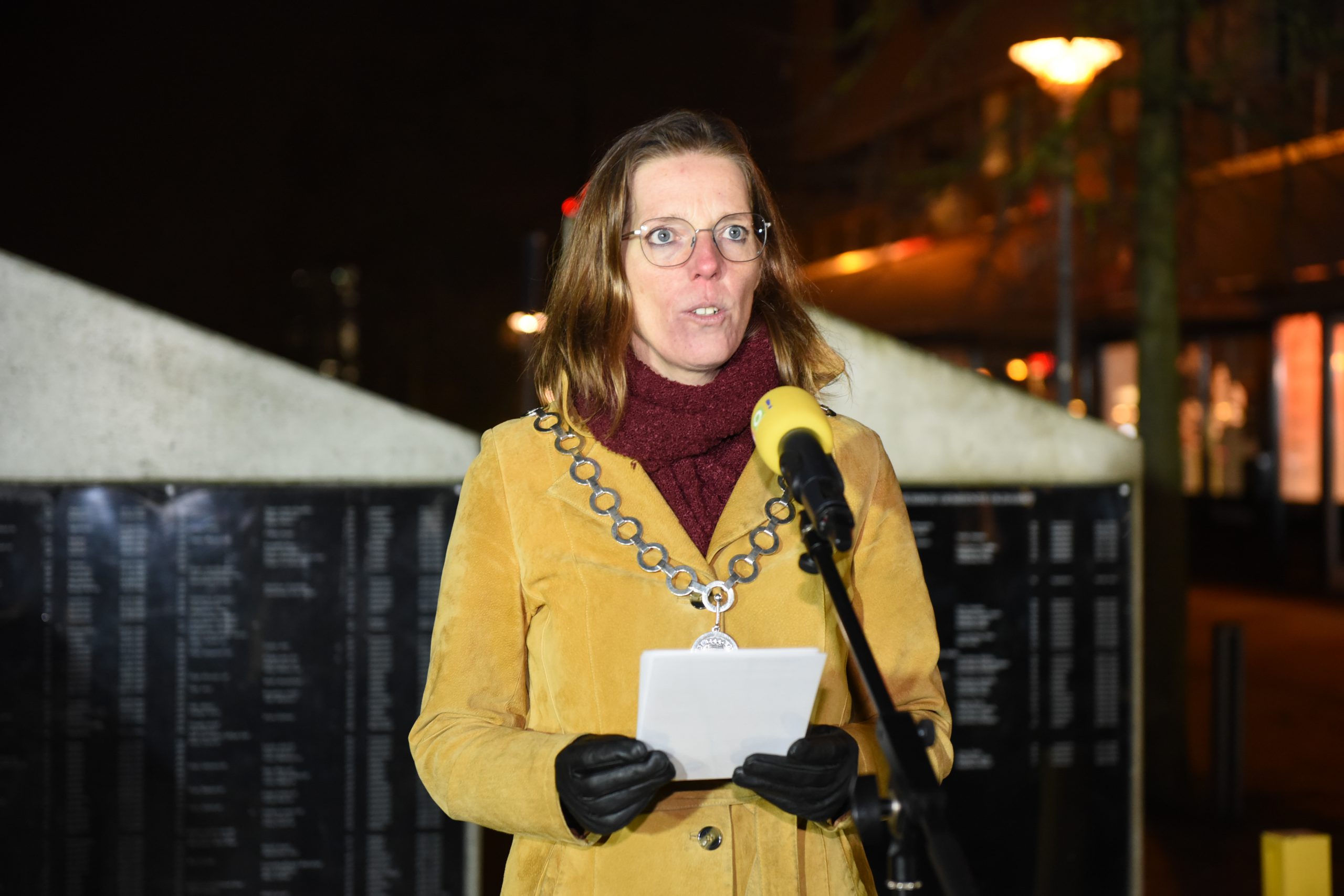 Op het monument aan het Israëlplein staan de namen geschreven die tijdens deze oorlog zijn omgekomen. Tijdens deze herdenking heeft burgemeester Cora-Yfke Sikkema een korte speech gehouden en stil gestaan bij wat er in deze oorlogsjaren is gebeurd. Ook 5 leerlingen van het Dollard college en het Ubbo Emmius college waren hierbij aanwezig. Zij hebben namen voorgelezen. Daarna was er de legging van de bloemstukken.