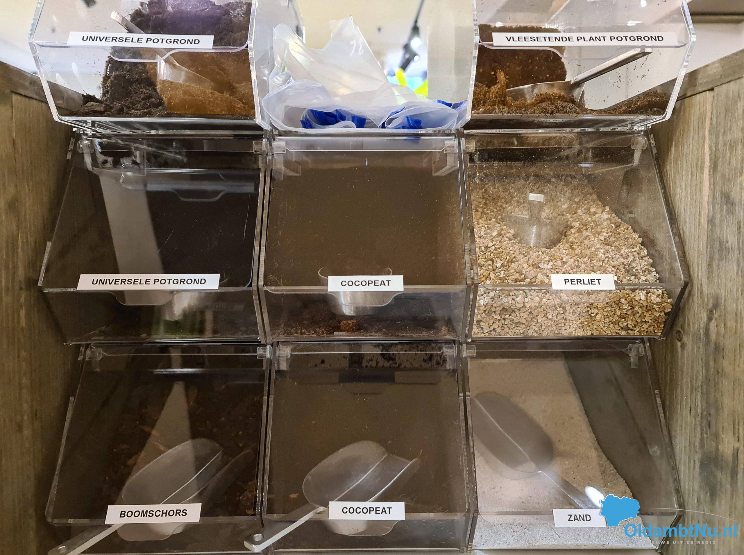 Eimardo voorziet de klant van een goed advies, en wanneer nodig wordt de plant ter plekke in een andere pot of potgrond gezet. Ook is er de potgrond bar, waar je zelf, of met advies van Eimardo je potgrond kunt samenstellen. “Universele potgrond is voor heel veel planten een beetje goed, hier krijg je de potgrond zoals het helemaal goed is voor die ene plant”.