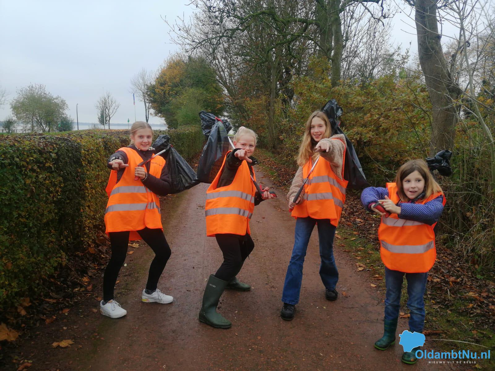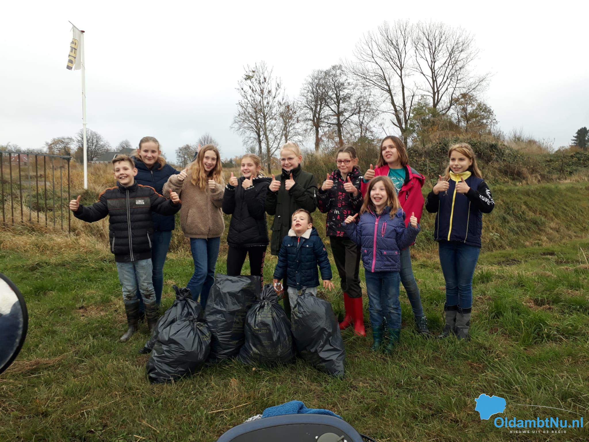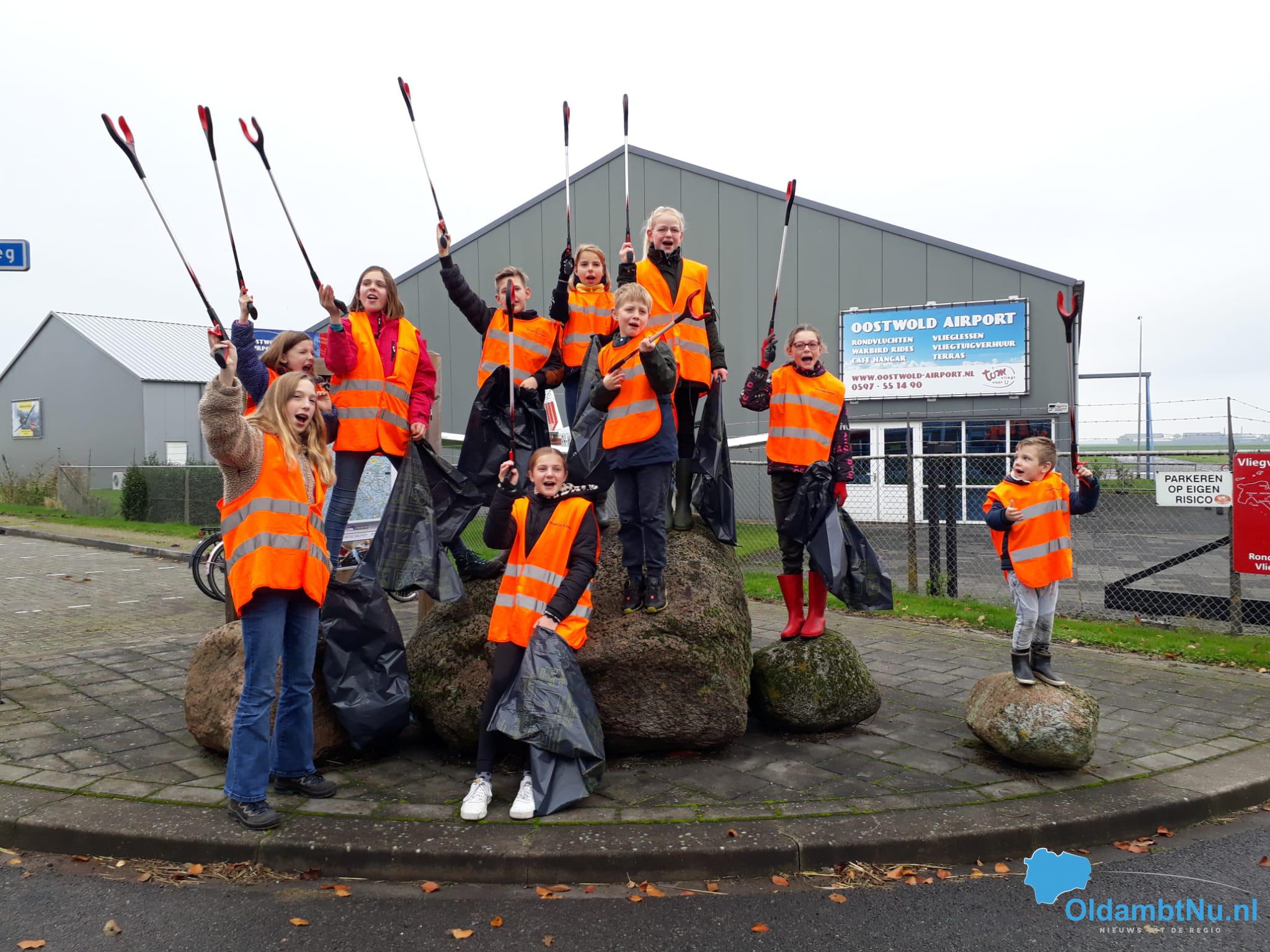 Groep 8 CBS de Lichtboei ruimt afval op rondom Oostwold