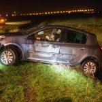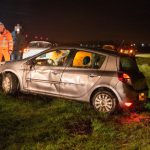 Scheemda – Bij een ongeval op de oprit naar de A7 bij Scheemda is een auto op zijn zijkant in een sloot terecht gekomen.