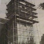 Midwolda – De afgelopen maand is de kerktoren in Midwolda weer geschilderd. Dit gebeurde met een hoogwerker. Heel anders dan toen de toren in 1980 geverfd werd. Toen werd er eerst een steiger op gebouwd en moesten de schilders met ladders van steiger naar steiger klimmen om zo de toren te schilderen.