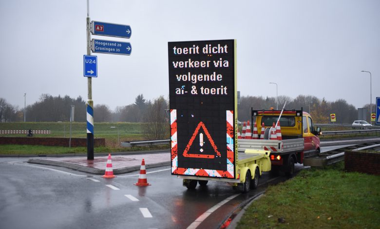 Winschoten – De toerit van de A7 bij Winschoten richting Groningen is momenteel afgesloten, dit wegens een modderspoor. Een aannemer van Rijkswaterstaat gaat het modderspoor dat op het wegdek ligt opruimen.