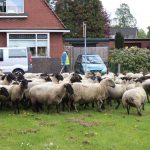 Scheemda – Maandagochtend hebben de schapen van Stadskudde Oldambt een wandeling gemaakt door Scheemda. Ze werden verplaatst naar een ander grasveld.