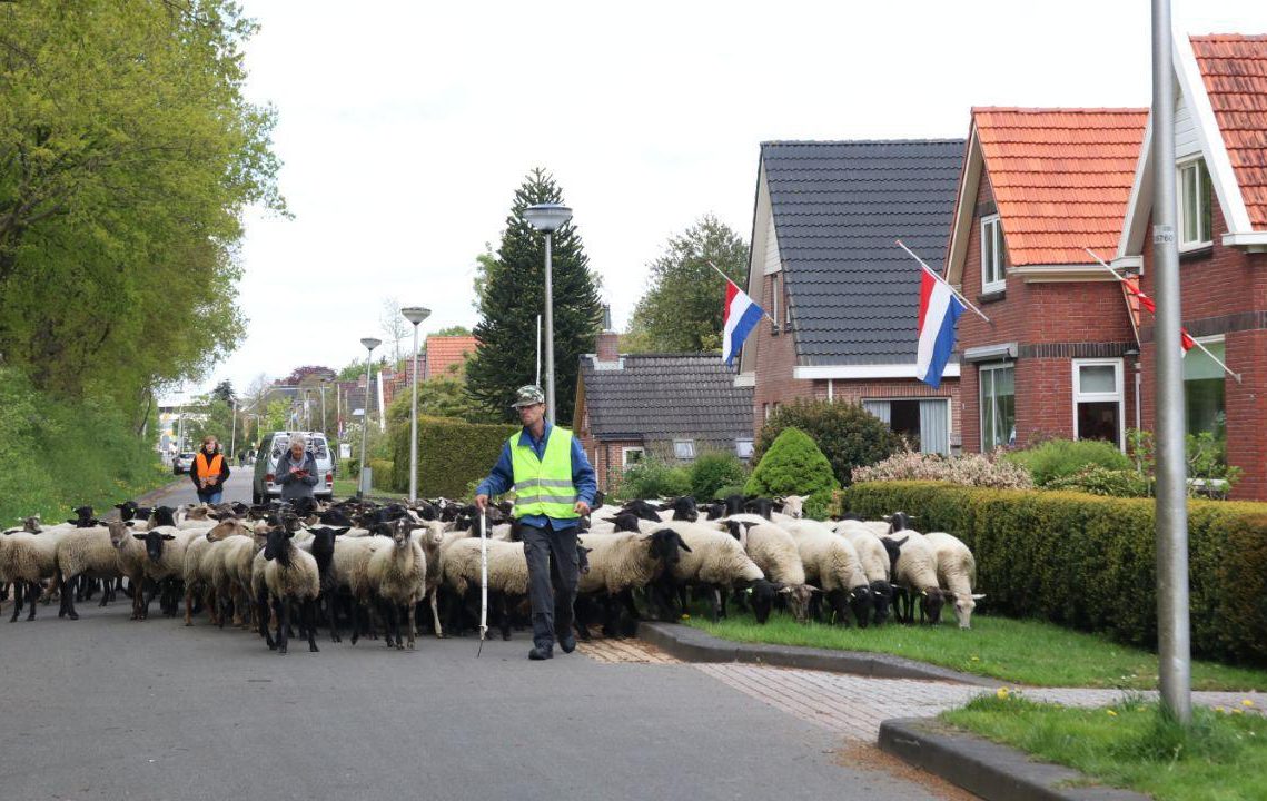 Schapen op reis door Scheemda naar volgend stukje gras