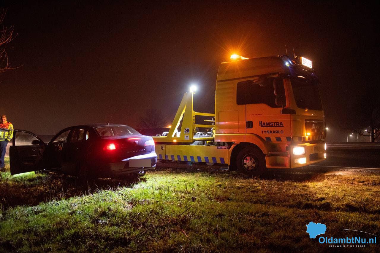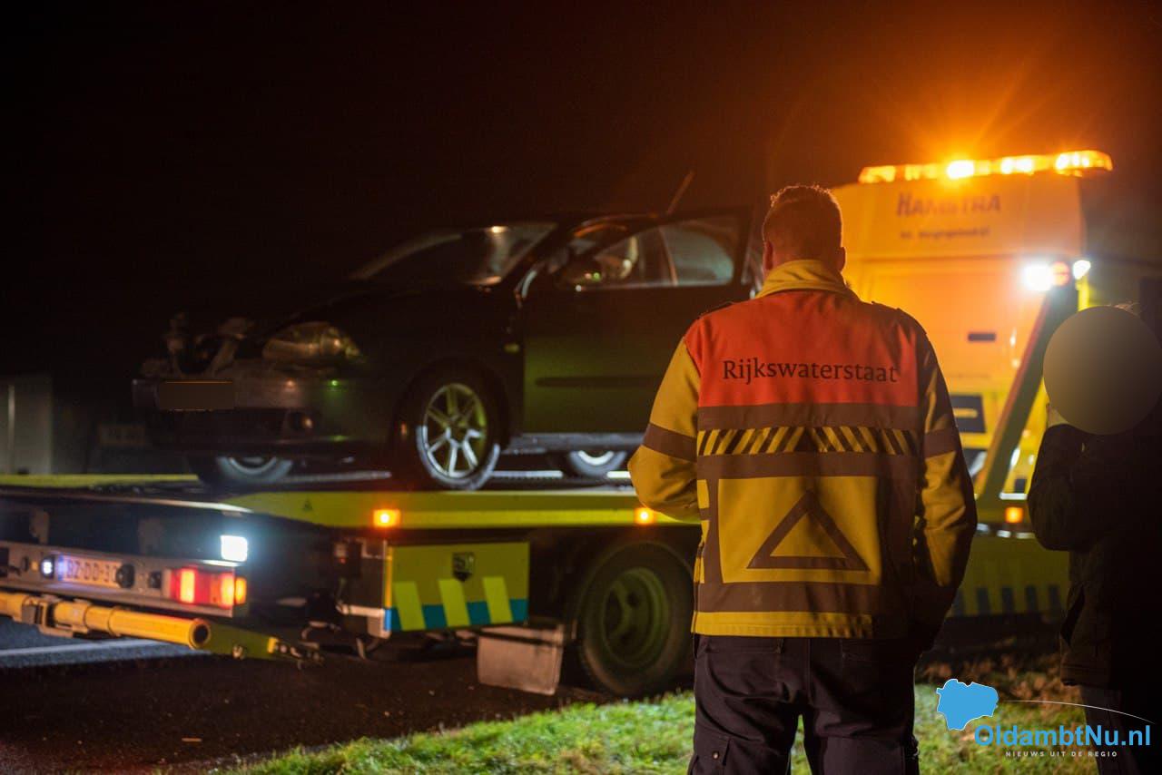 Auto botst tegen geleiderail op de N33 bij Veendam