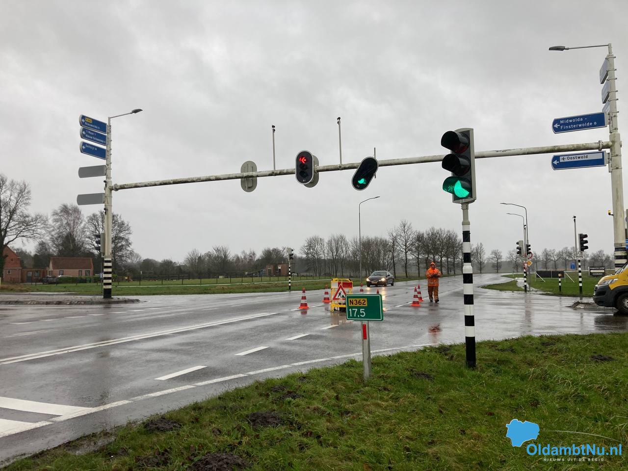 Omdat er kans was dat het verkeerslicht naar beneden op de N362 zou vallen werd allereerst een rijstrook afgesloten. Het apparaat hing alleen nog aan de stroomkabel vast en dreigde op de weg te vallen.