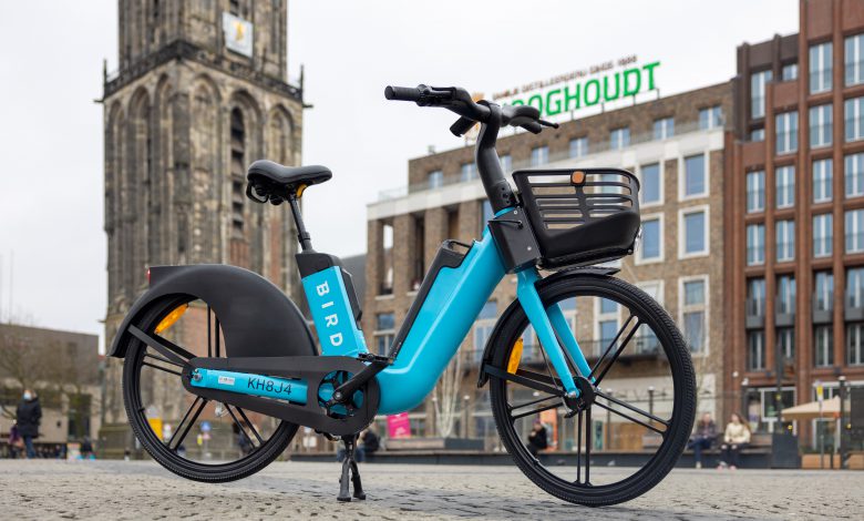 De opvallende, blauwe e-bikes van Bird staan verspreid over ruim zestig plekken in de stad en zijn bedoeld als alternatief voor de auto tijdens de grootschalige werkzaamheden van Operatie Julianaplein.
