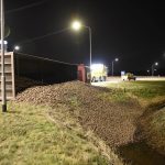 Veendam – Een vrachtwagen geladen met aardappels is donderdagavond gekanteld bij de rotonde van de N366 bij Veendam.