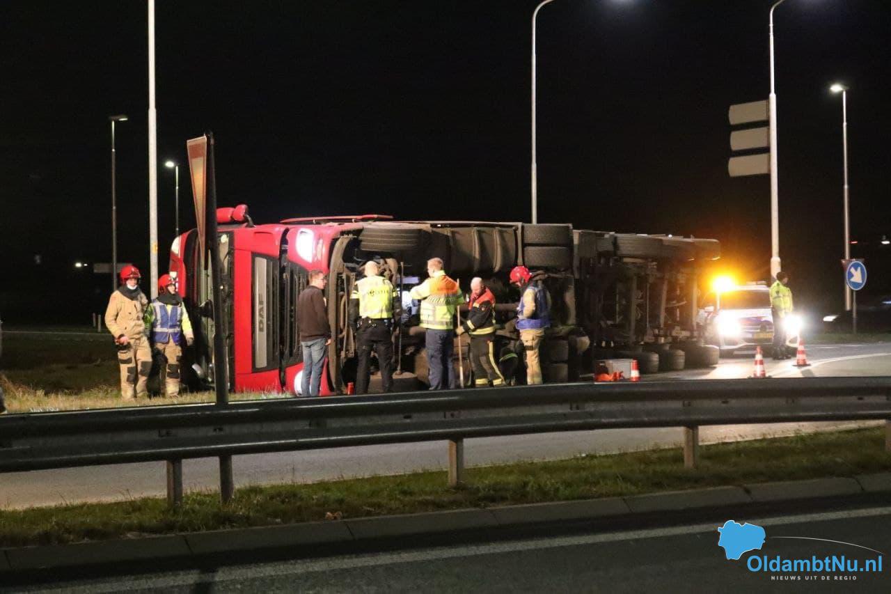Het ongeval gebeurde omstreeks 18:20 uur op de rotonde van de N366. Een vrachtwagen met aardappels kwam op zijn kant terecht. Naast politie-eenheden en de ambulancedienst werd ook de brandweer gealarmeerd.