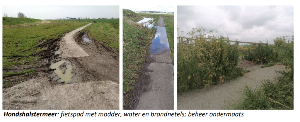 Oldambt – Fietsers in Oldambt zijn – gemiddeld meer dan elders in Nederland – kritisch over veel te smalle fietspaden en slecht onderhoud van wegen en paden; de paden zijn vaak vervuild (modder, water, maairesten, etc.), niet comfortabel (hobbels, scheuren, randen, etc.) en er is overlast van overhangend gras, berenklauw en brandnetels.