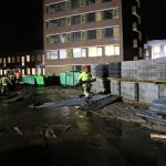 Bij de voormalige zusterflat in Winschoten, die momenteel wordt verbouwd tot appartementencomplex, dreigde bouwmateriaal van het dak naar beneden te vallen. Bij aankomst van de brandweer gebeurde dit daadwerkelijk. De hulptroepen hebben stenen op de platen gelegd om te voorkomen dat het verder zal wegwaaien.