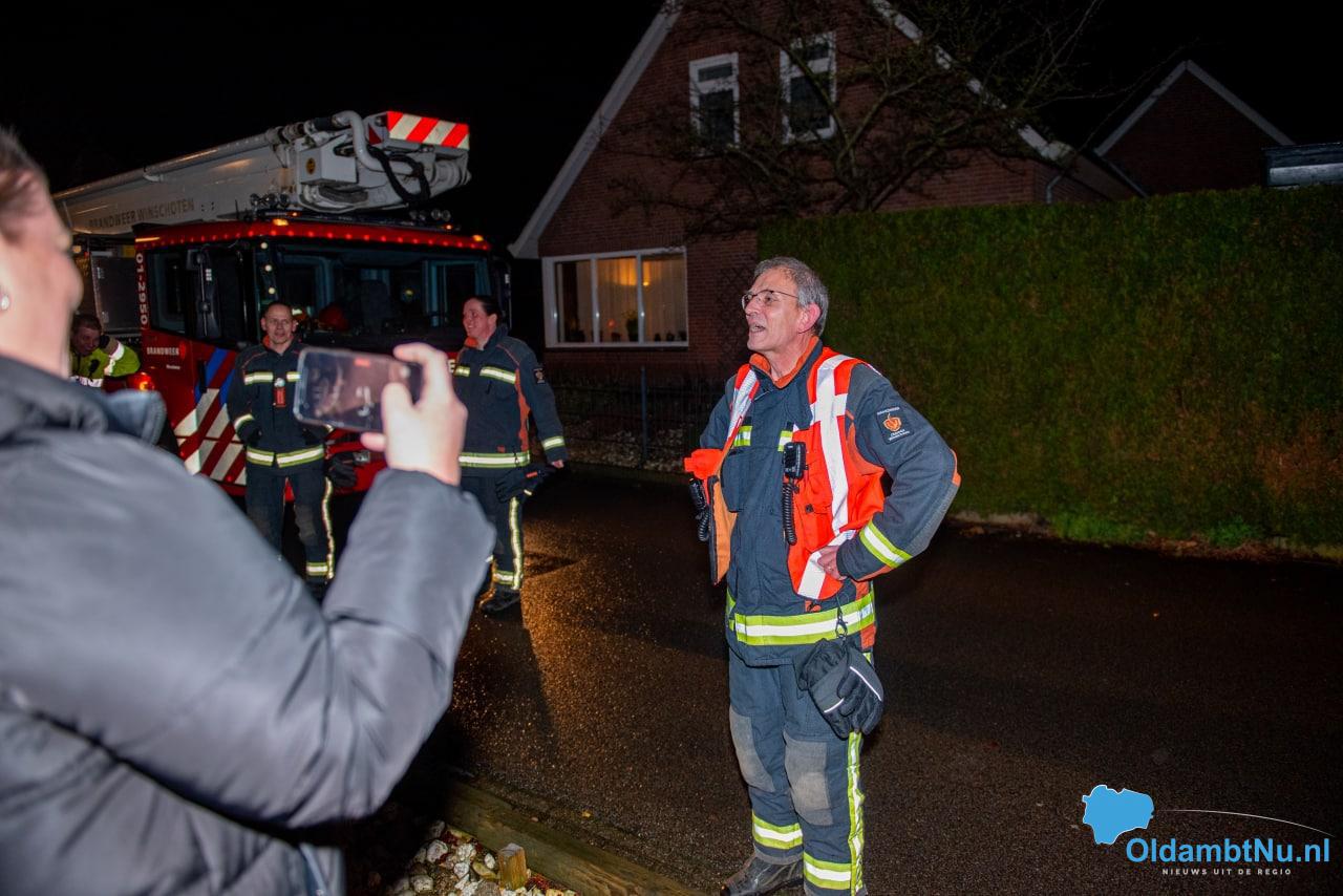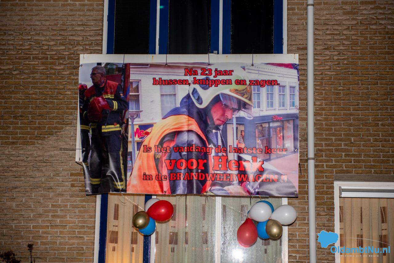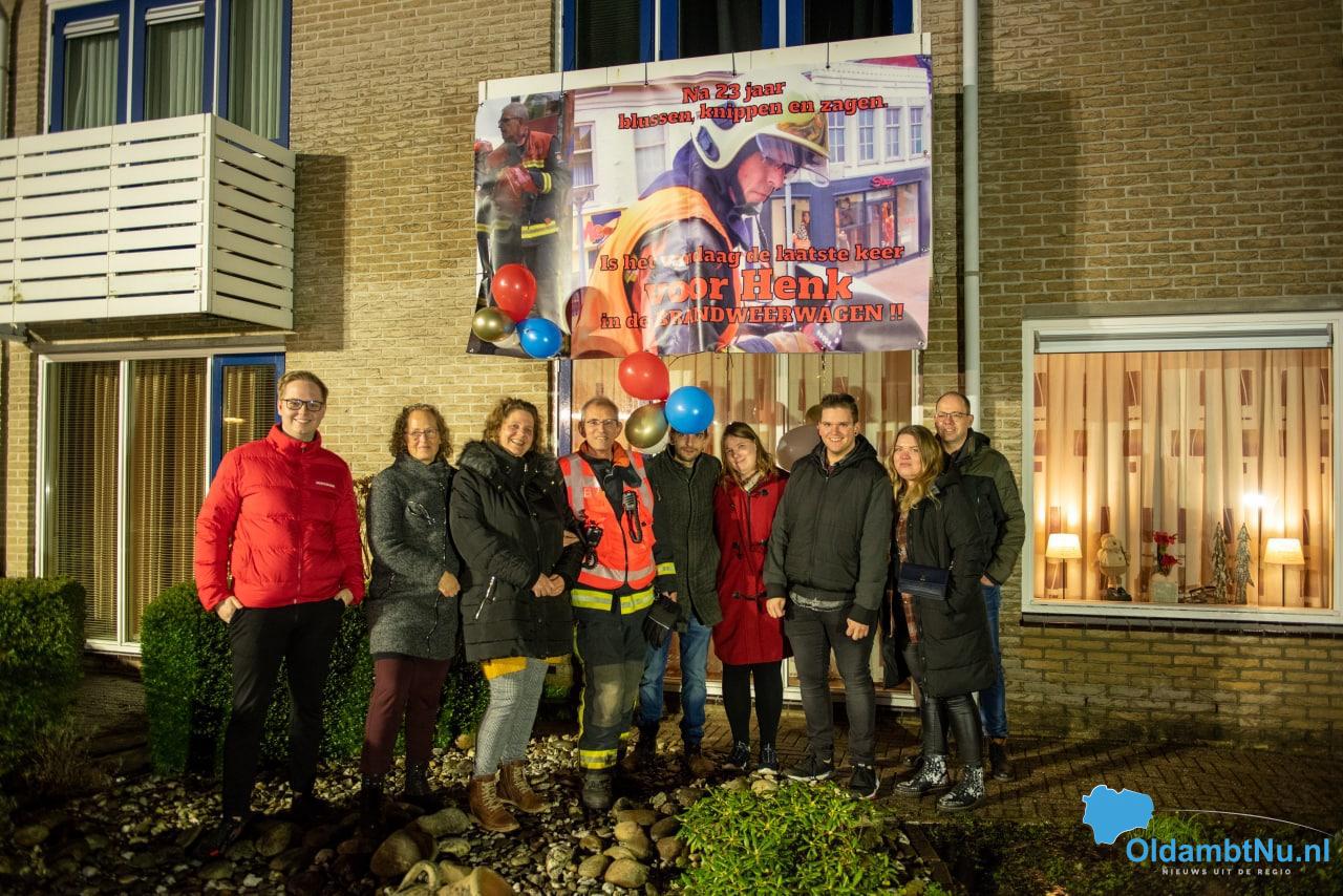 Tijdens een reguliere oefenavond gingen de piepers van de brandweerlieden. Er werd hulp gevraagd bij een woning in Winschoten. Bij aankomst stond zijn gezin hem op te wachten bij zijn eigen woning, Henk werd hartelijk onthaald samen met een groot spandoek op het balkon.