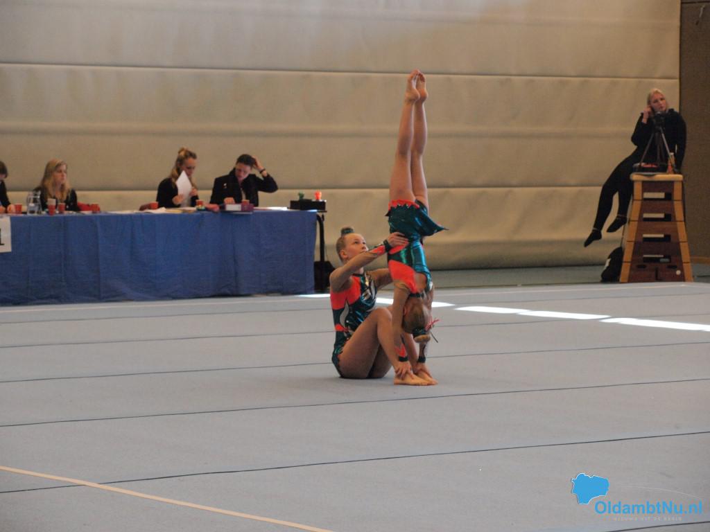 In de senioren klasse bij de duo’s behaalden Melissa Arents en Fleur Sassen van GV Bato Winschoten de provinciale titel met 24.450 punten. Clubgenootjes Meike Koning en Fayen Sterenborg werden met een mooie oefening derde. Bij de trio’s senioren zetten Hilde Dieterman, Denise Hollander en Riva Werkman een mooie oefening neer welke werd beloond met 23.570 punten. Dit was voldoende voor het goud. Het zilver ging naar Lotte Jonker, Alana Kruid en Marloes Wesseling van SV Dynamica uit Nieuwe Pekela.