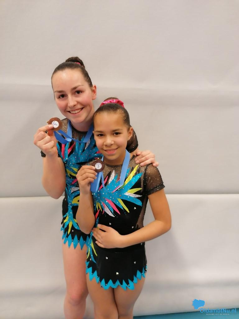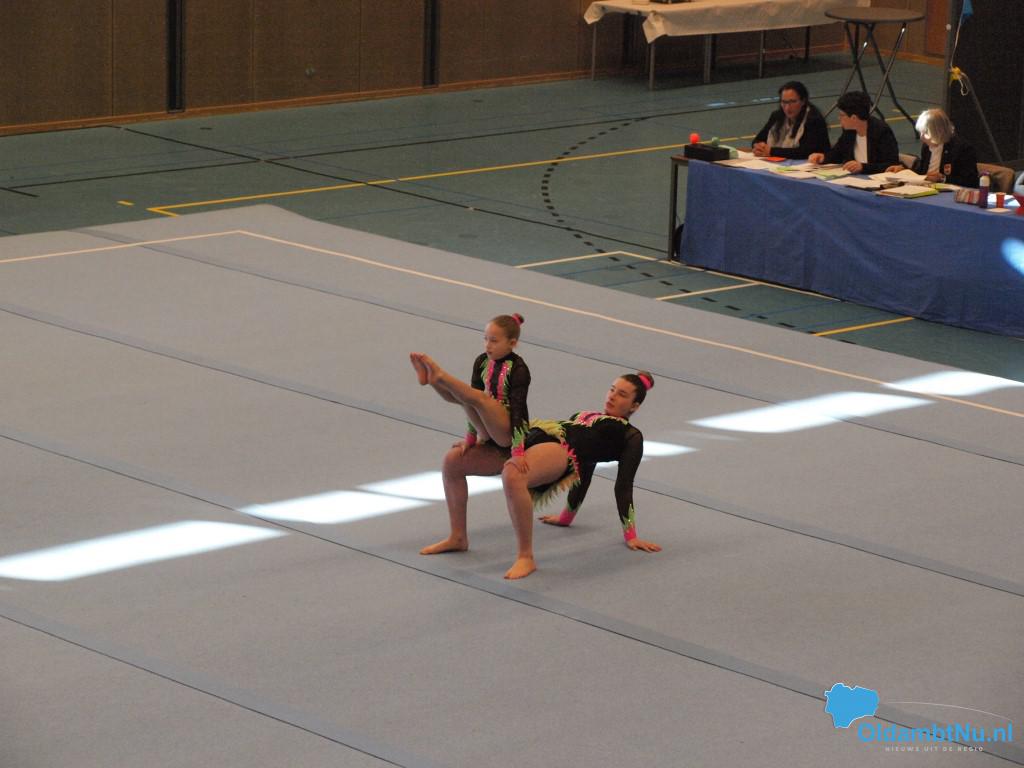 Bij de D-senioren duo’s was het deelnemersveld groot en het niveau zeer aan elkaar gewaagd. Het zilver werd met een mooie artistieke oefening gewonnen door Marise de Vries en Romee Luth van Dynamica. Het brons was voor Rosa Masari en Anouk Haan van Bato. En met een score van 22.310 behaalden Michella Masari en Ilse Mulder een derde plaats bij de Junioren.
