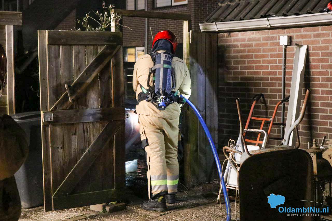 De bewoner van de woning was zelf al een blusactie gestart met een tuinslang. Door snel ingrijpen kon worden voorkomen dat de schutting in vlammen op ging.