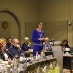Burgemeester Cora-Yfke Sikkema had voor elk van hen een korte toelichting over zijn/ haar zitting in de raad. Naast een bloemetje kregen zij ook een klein presentje aangeboden.