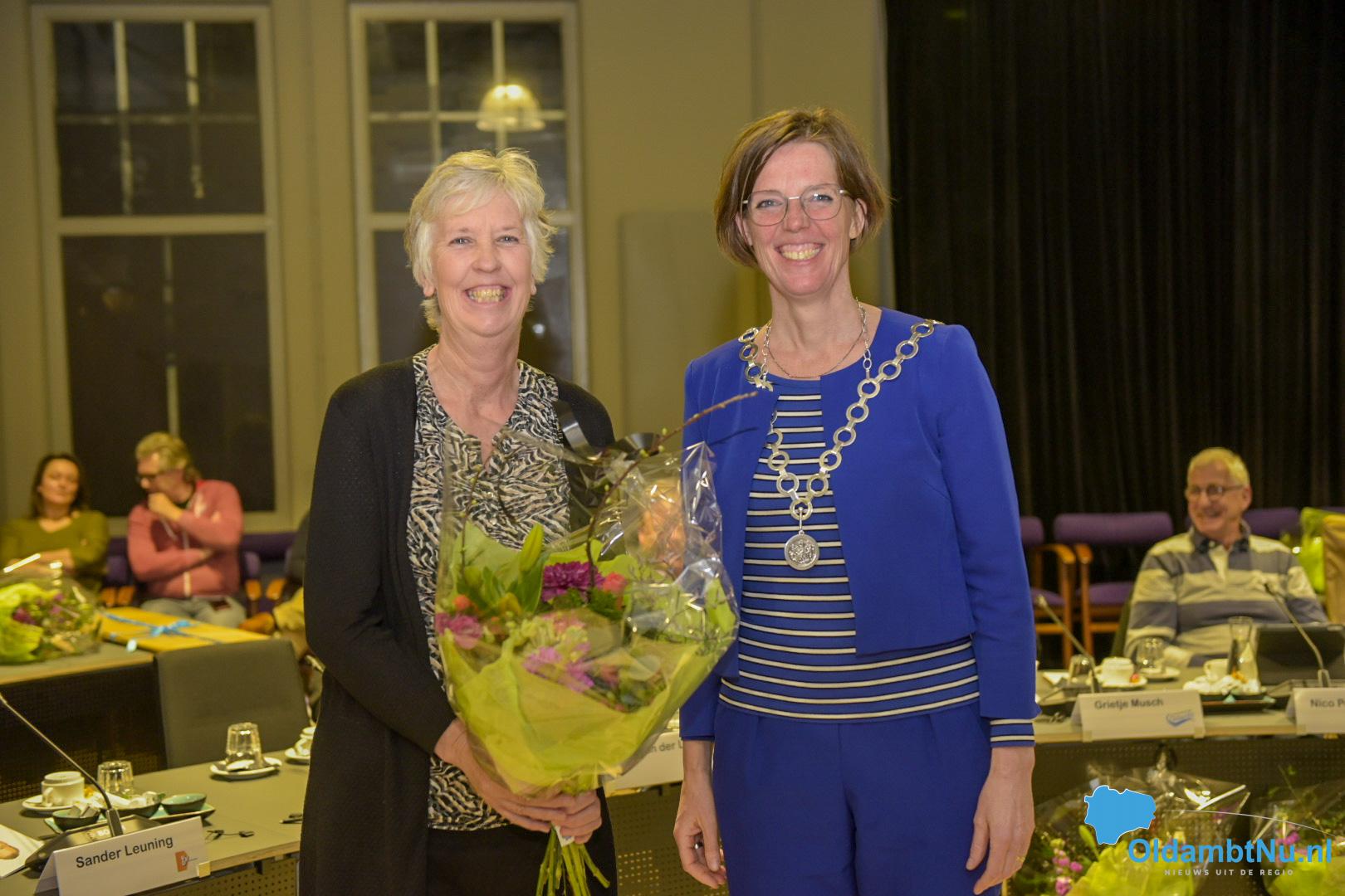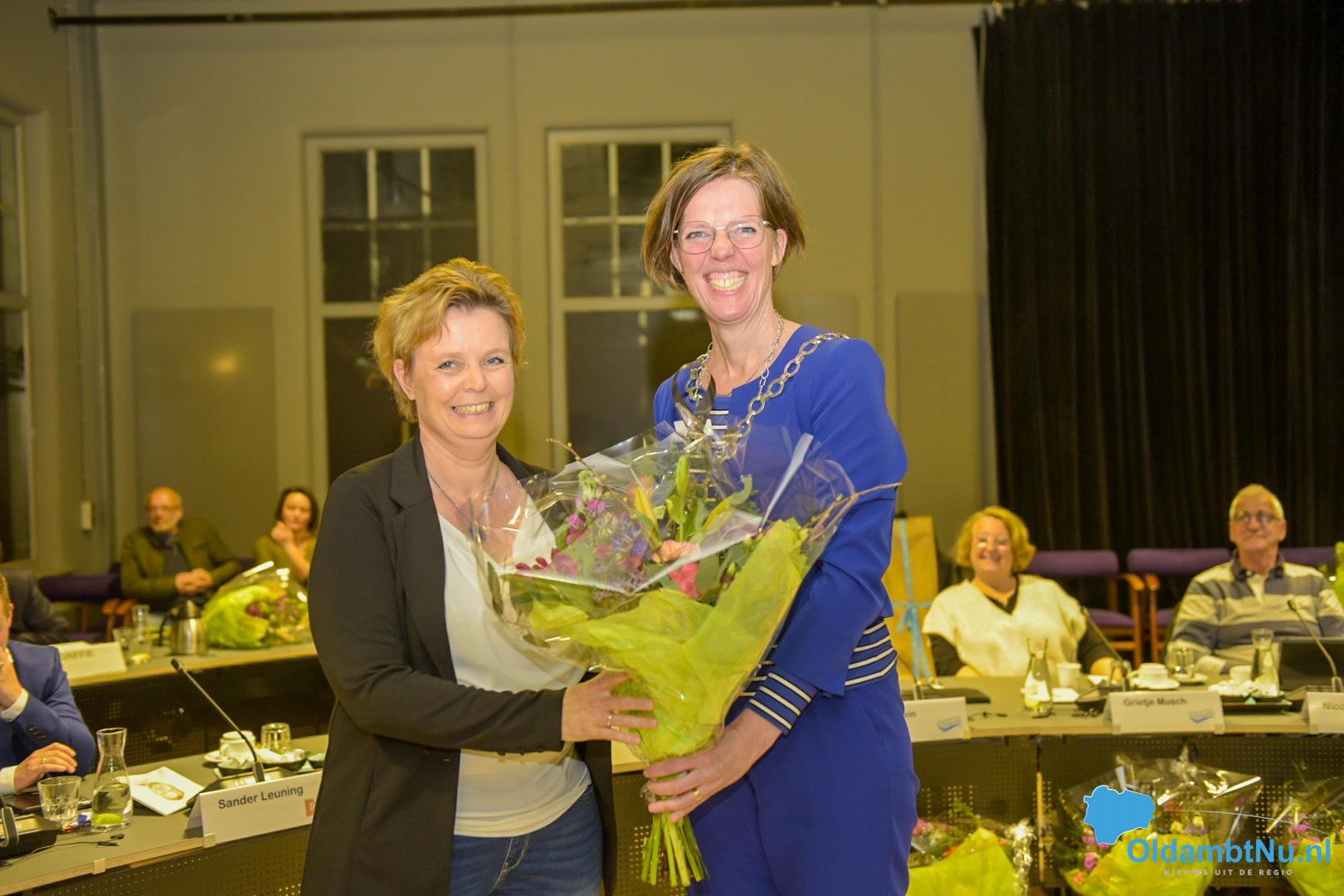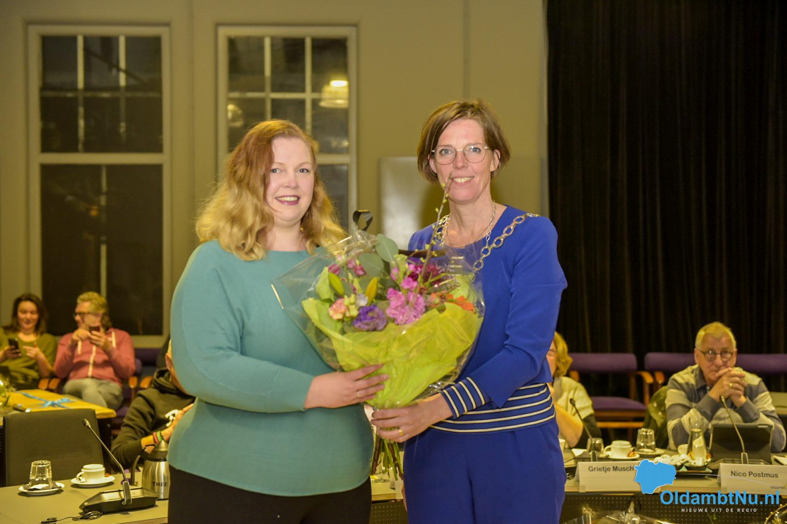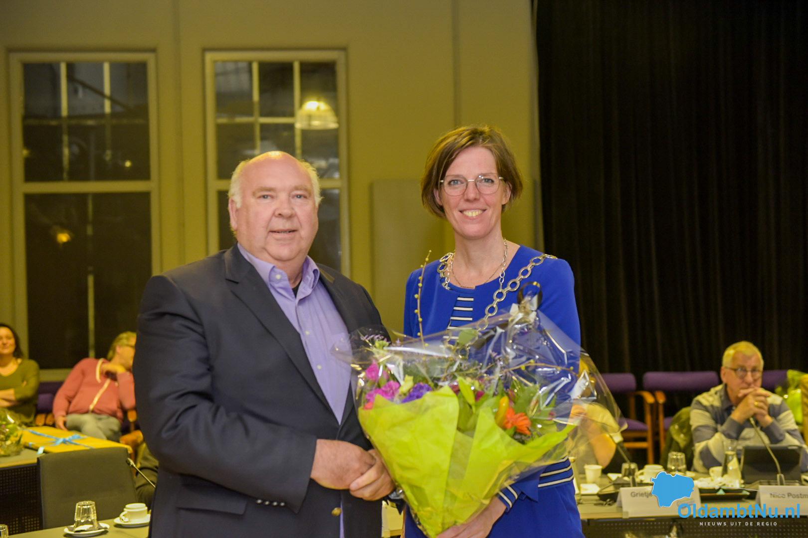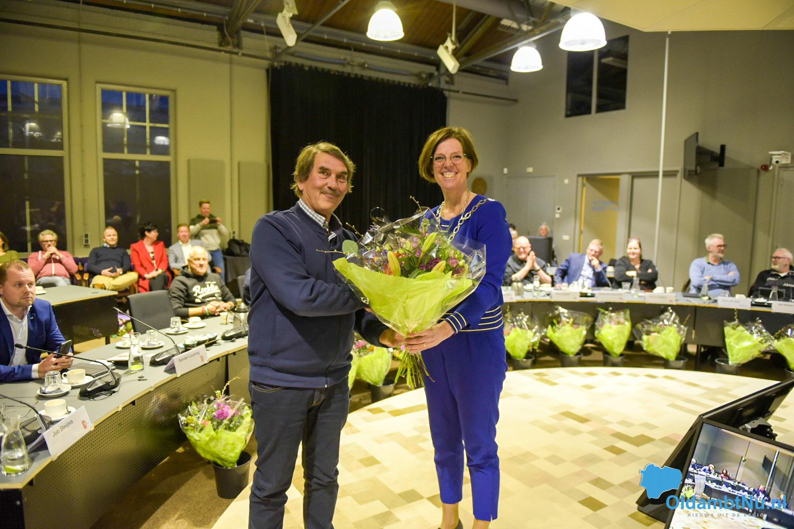 Burgemeester Cora-Yfke Sikkema had voor elk van hen een korte toelichting over zijn/ haar zitting in de raad. Naast een bloemetje kregen zij ook een klein presentje aangeboden.