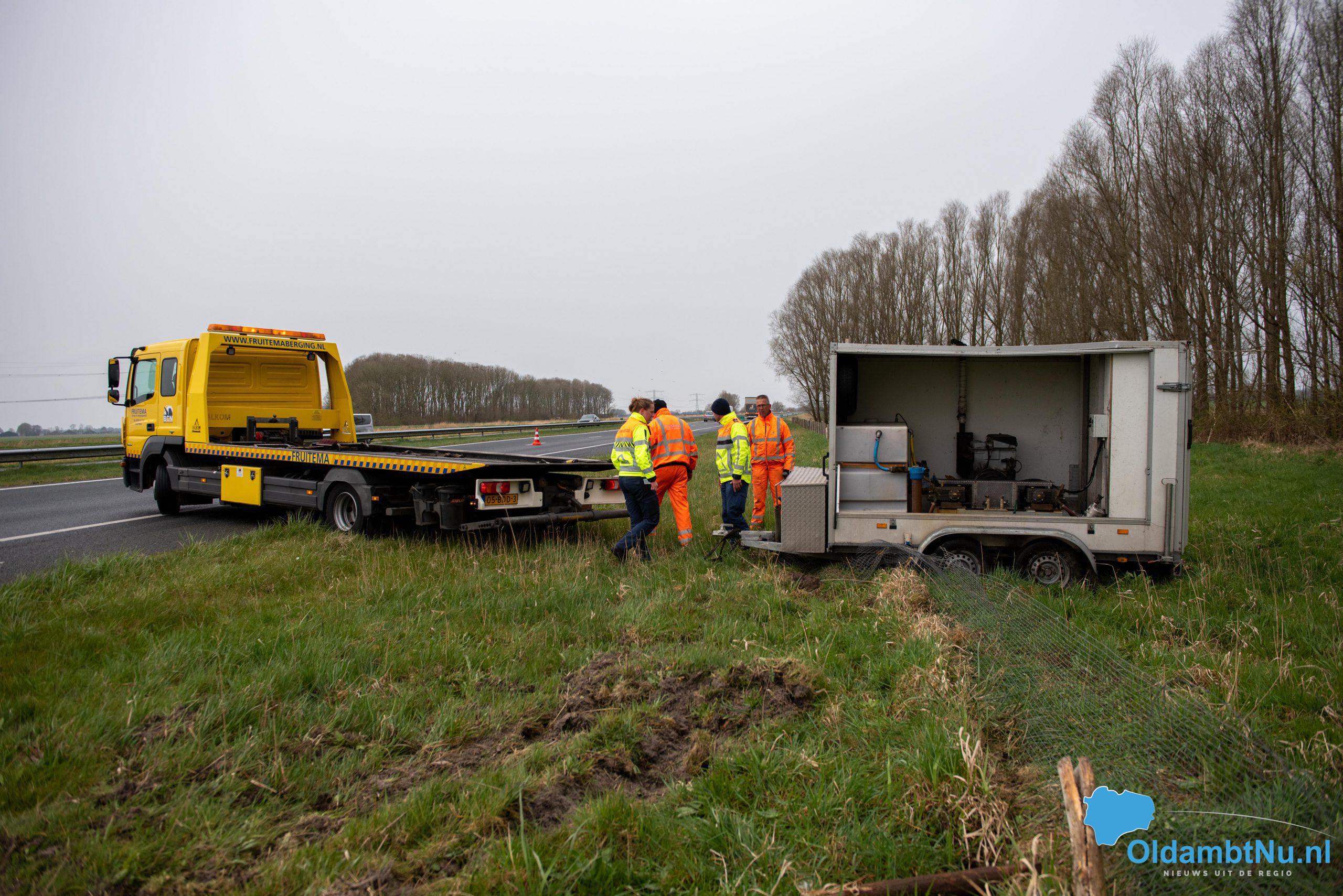 De rechter rijstrook werd door Rijkswaterstaat en een aannemer afgesloten. Bij het ongeval raakte niemand gewond. Bergingsbedrijf Fruitema uit Oude Pekela heeft de aanhanger geborgen waarna de weg weer vrij gegeven kon worden.