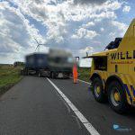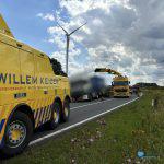 Vrachtwagen vast in de berm op N33: Verkeer omgeleid