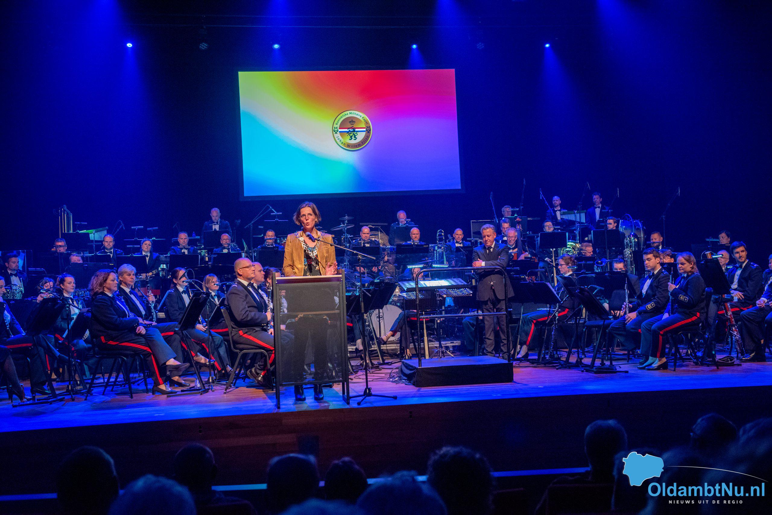 Winschoten – Afgelopen donderdag 21 april reikte burgemeester Cora-Yfke Sikkema de Koninklijke Erepenning uit aan Stedelijke Muziekvereniging Nieuw Leven. De Winschoter muziekvereniging kreeg de penning uitgereikt vanwege haar 100-jarig bestaan tijdens een feestelijk concert door de Koninklijke Militaire Kapel Johan Willem Friso uit Assen in Cultuurhuis De Klinker.