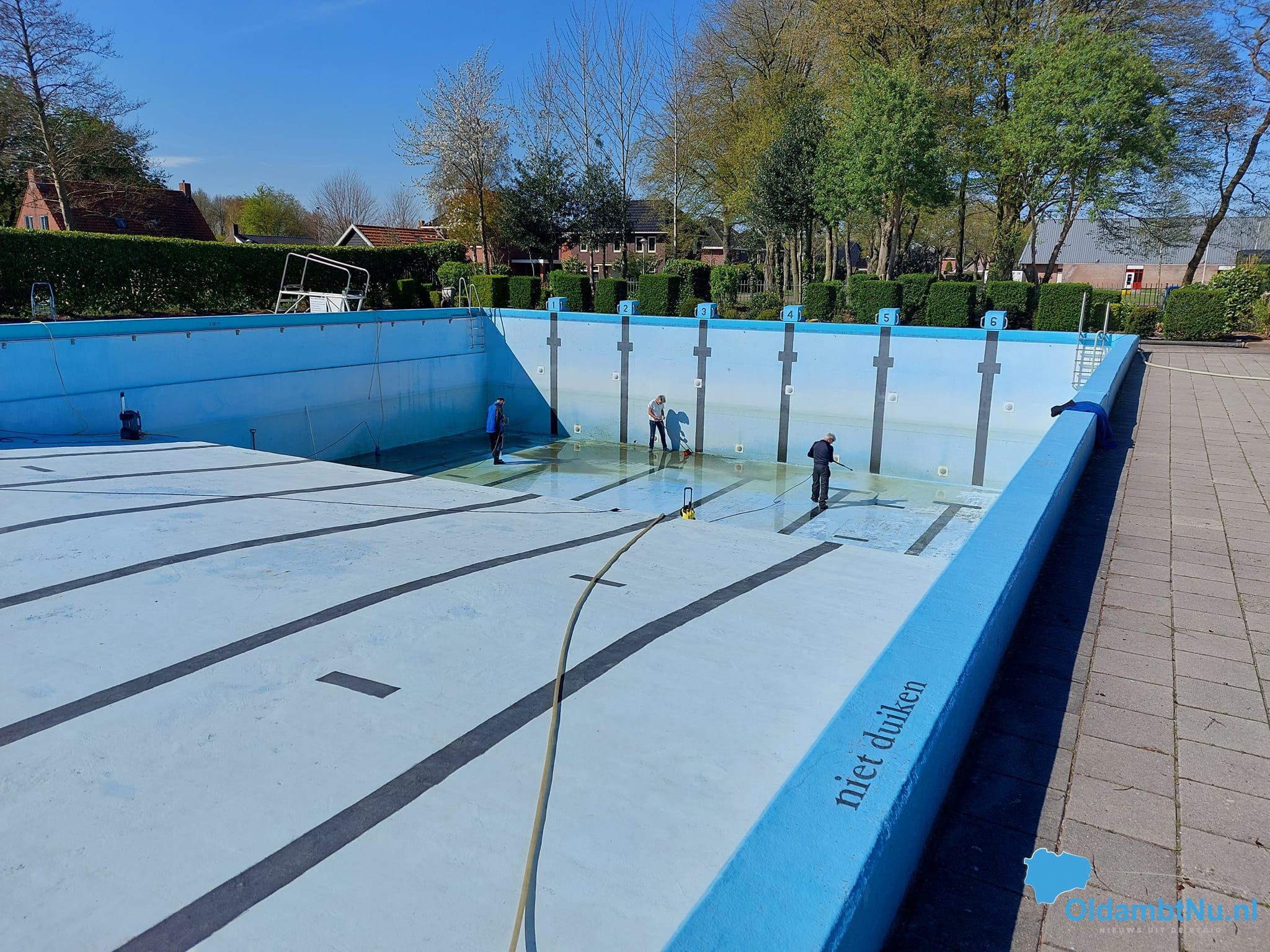 De vrijwilligers zijn druk bezig met de voorbereidingen. Het zwembad is in de winterperiode leeg geweest, de baden zijn vies en worden schoon gemaakt. Vervolgens worden ze gevuld met water.