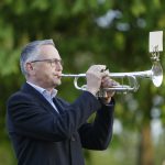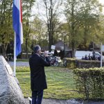 Daarna gingen alle aanwezigen naar buiten. Trompettist Rens Riechelman blies indrukwekkend de Taptoe / Last Post waarna er 2 minuten stilte werd gehouden. De leerlingen legden namens de gemeente Oldambt een krans bij het monument. Daarna konden aanwezigen een door het Oranjecomité uitgedeelde bloem bij het monument of de oorlogsgraven neerleggen.