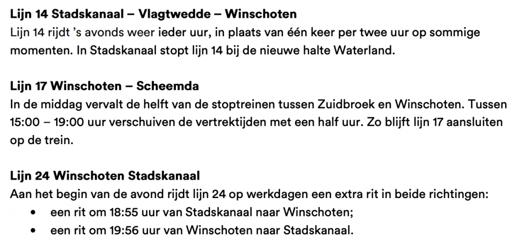 Een volledig overzicht met alle wijzigingen is te vinden op www.qbuzz.nl/gd. Op de website van Qbuzz zijn ook de nieuwe vertrektijden beschikbaar.