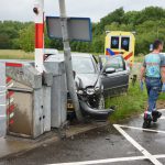 De bestuurder hoefde na een controle niet mee naar het ziekenhuis. De man werd vervolgens door het ambulancepersoneel naar huis gebracht. De auto is vervolgens geborgen door bergingsbedrijf Fruitema uit Oude Pekela. Ook de slagboom raakte fors beschadigd.