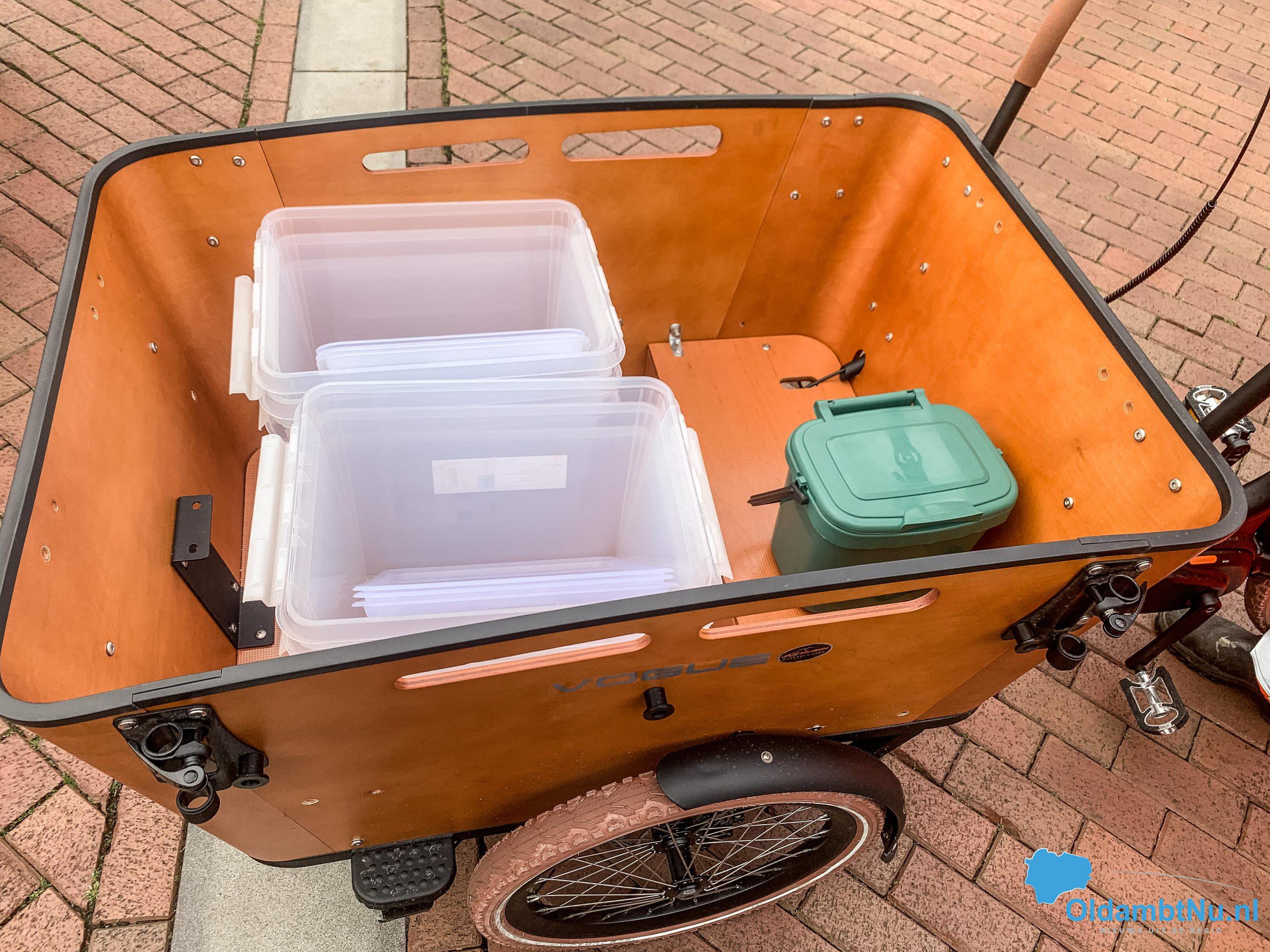 De bewoners van hoogbouw die zich hebben aangemeld voor dit proefproject, hebben vanuit de gemeente een 4 liter emmertje gekregen waar GFE (geen vlees) in verzameld kan worden. Deze emmertjes kunnen 2x per week op een vast tijdstip in de voedselfiets worden geleegd. En de voedselfiets brengt dit naar de gemeentewerf waar de wormen compostcontainer staat.