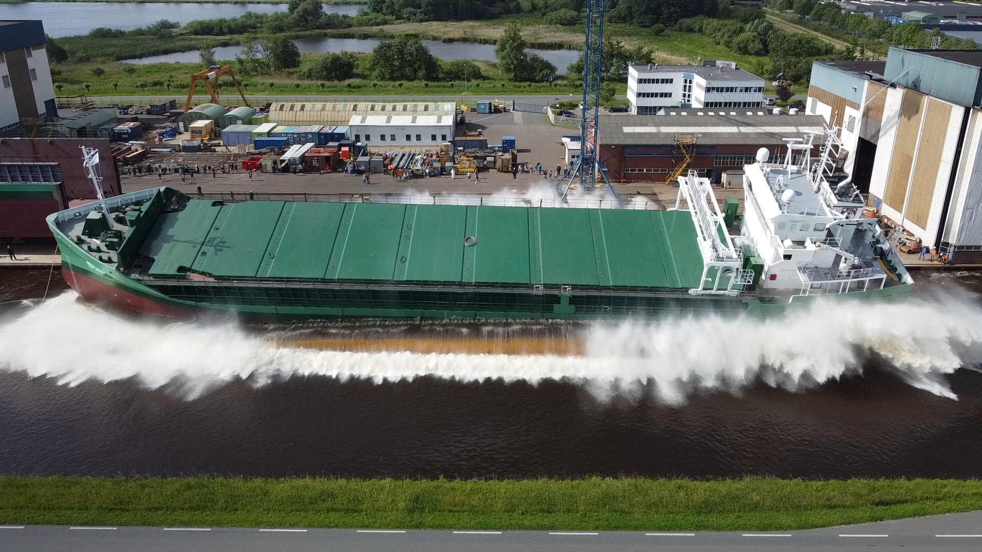 Westerbroek – Bij scheepswerf Ferus Smit werd afgelopen zaterdag om 10.00 uur de ‘Arklow Cove’ te water gelaten. Dit zorgde voor veel bekijks.