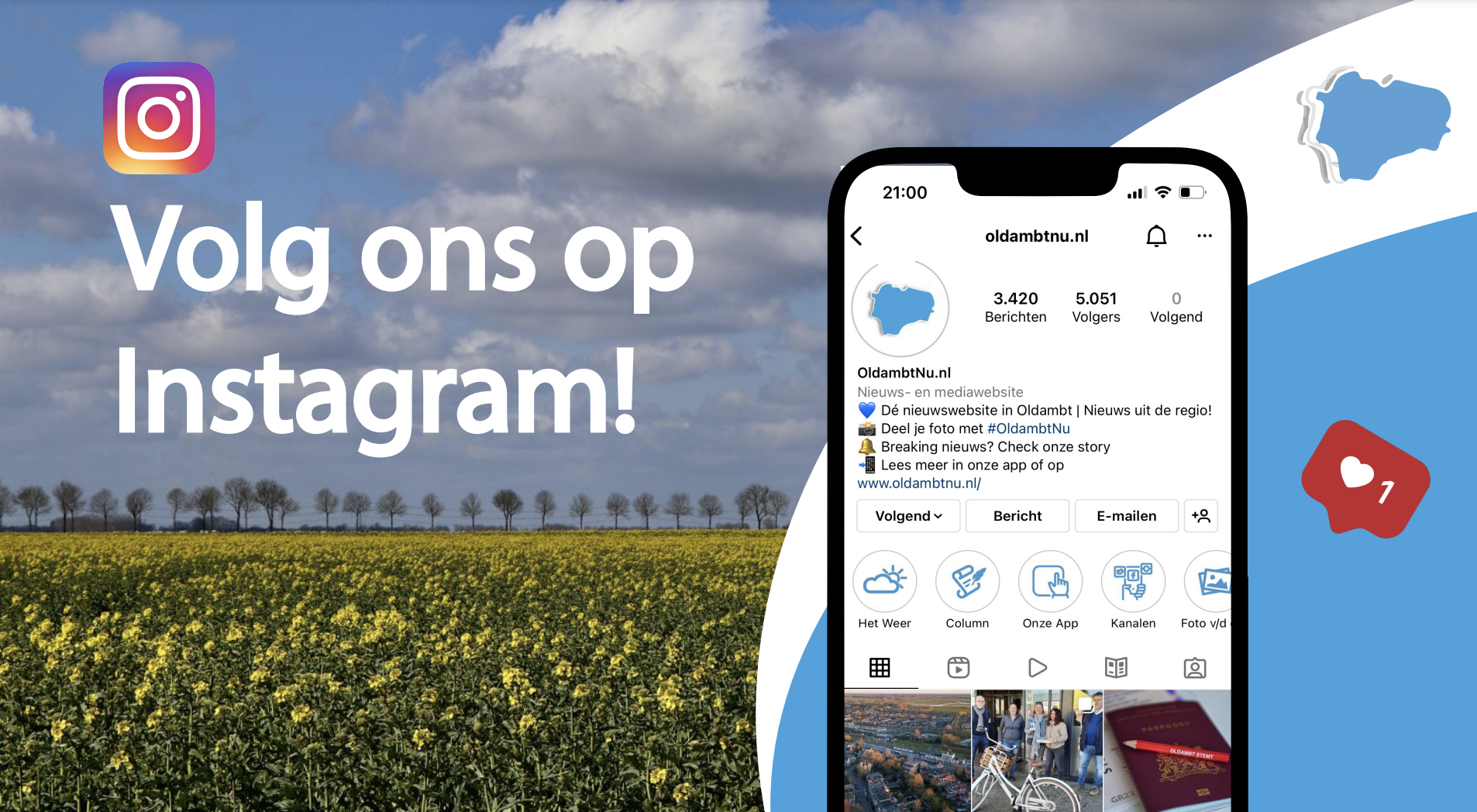 Oldambt – Wist je dat wij ook op Instagram actief zijn? Daar delen wij dagelijks stories en posts met bijvoorbeeld onze nieuwsartikelen, interessante feitjes maar ook foto’s die gemaakt zijn in het Oldambt. Kortom: je hoeft helemaal niks meer van OldambtNu.nl te missen!
