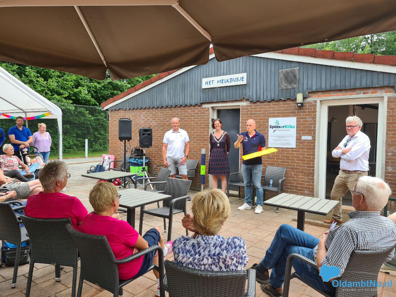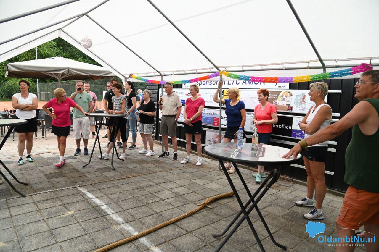 Beerta – Op zondag 26 juni reikte burgemeester Cora-Yfke Sikkema de Koninklijke Erepenning uit aan tennisvereniging AMOR in Beerta. De Erepenning werd aan de tennisvereniging toegekend vanwege het 100-jarig jubileum. De uitreiking vond plaats in de kantine van de tennisvereniging aan de Buitenlandenstraat in Beerta.