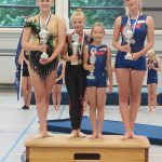 Tussendoor werden door de selectiegroepen Acro, Turnen en Ritmische Gymnastiek mooie demo’s gegeven. Het was een gezellige boel en de tribune zat bomvol met trotse ouders, grootouders en andere belangstellenden. De ochtend werd op een feestelijke manier afgesloten met een mega lange polonaise.