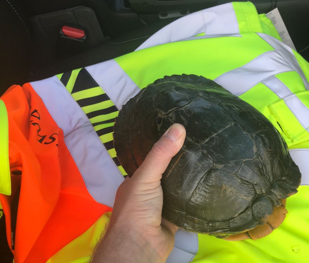 Heiligerlee – Een weginspecteur van Rijkswaterstaat kreeg een bijzondere melding tijdens zijn dienst. Op de A7 bij Heiligerlee liep een schildpad over de weg. Rijkswaterstaat kreeg de melding van een oplettende weggebruiker en stuurde de weginspecteur aan om te kijken.