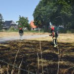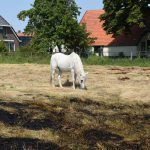 Oostwold – Een buitenbrand in een tuin bij een woning aan de Bernhardlaan is dinsdagmiddag overgeslagen naar een weiland. In het weiland stond een paard.