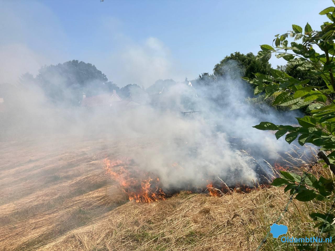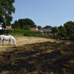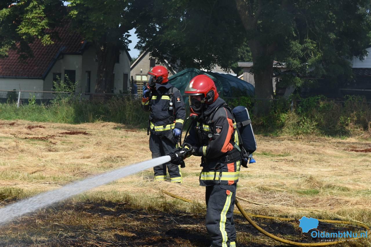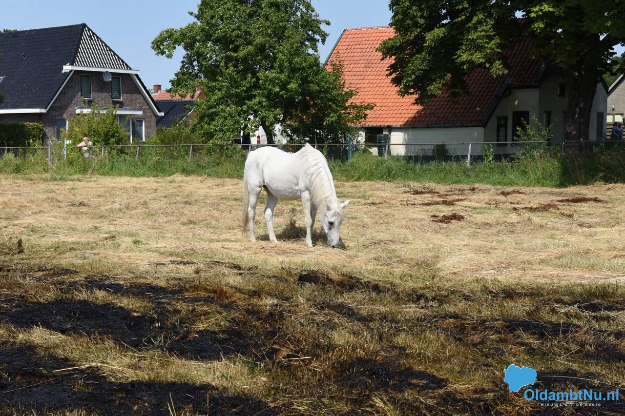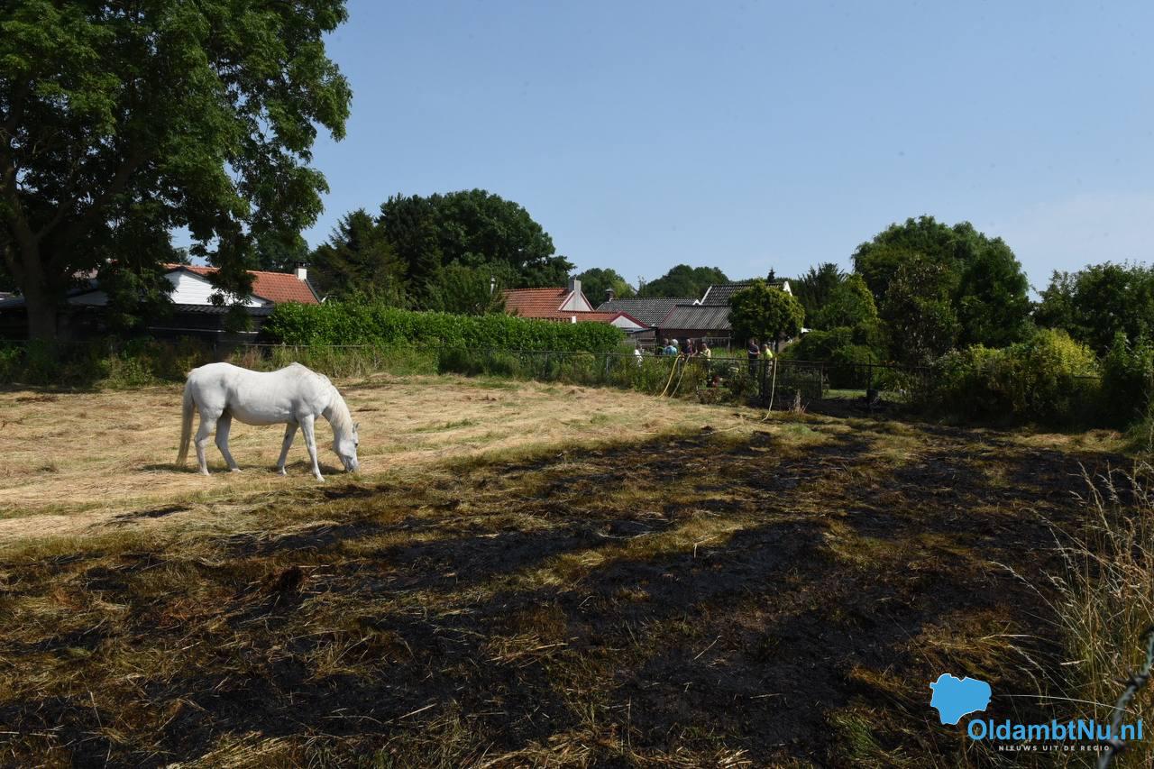 Oostwold – Een buitenbrand in een tuin bij een woning aan de Bernhardlaan is dinsdagmiddag overgeslagen naar een weiland. In het weiland stond een paard.