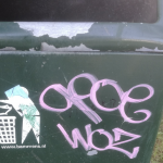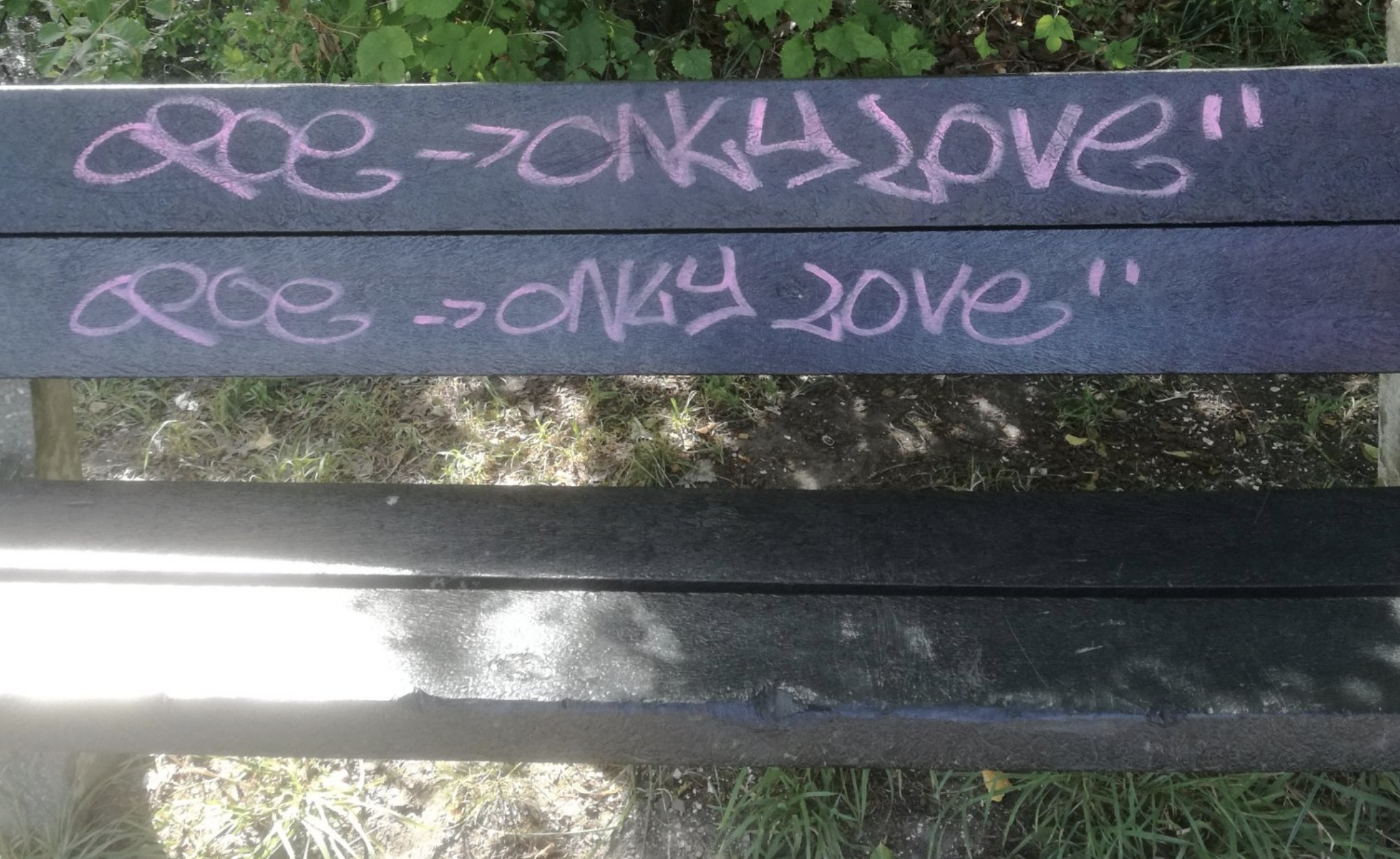 Scheemda – Er zijn wederom opzettelijke vernielingen gepleegd rondom het hertenkamp in Scheemda. Enkele weken geleden werd er al een bankje gesloopt en eerder al het hekwerk. Vrijwilligers hebben dit bankje net hersteld en het is alweer slachtoffer van vandalisme. Dit keer is er met verf op de bankjes en prullenbakken geklad.