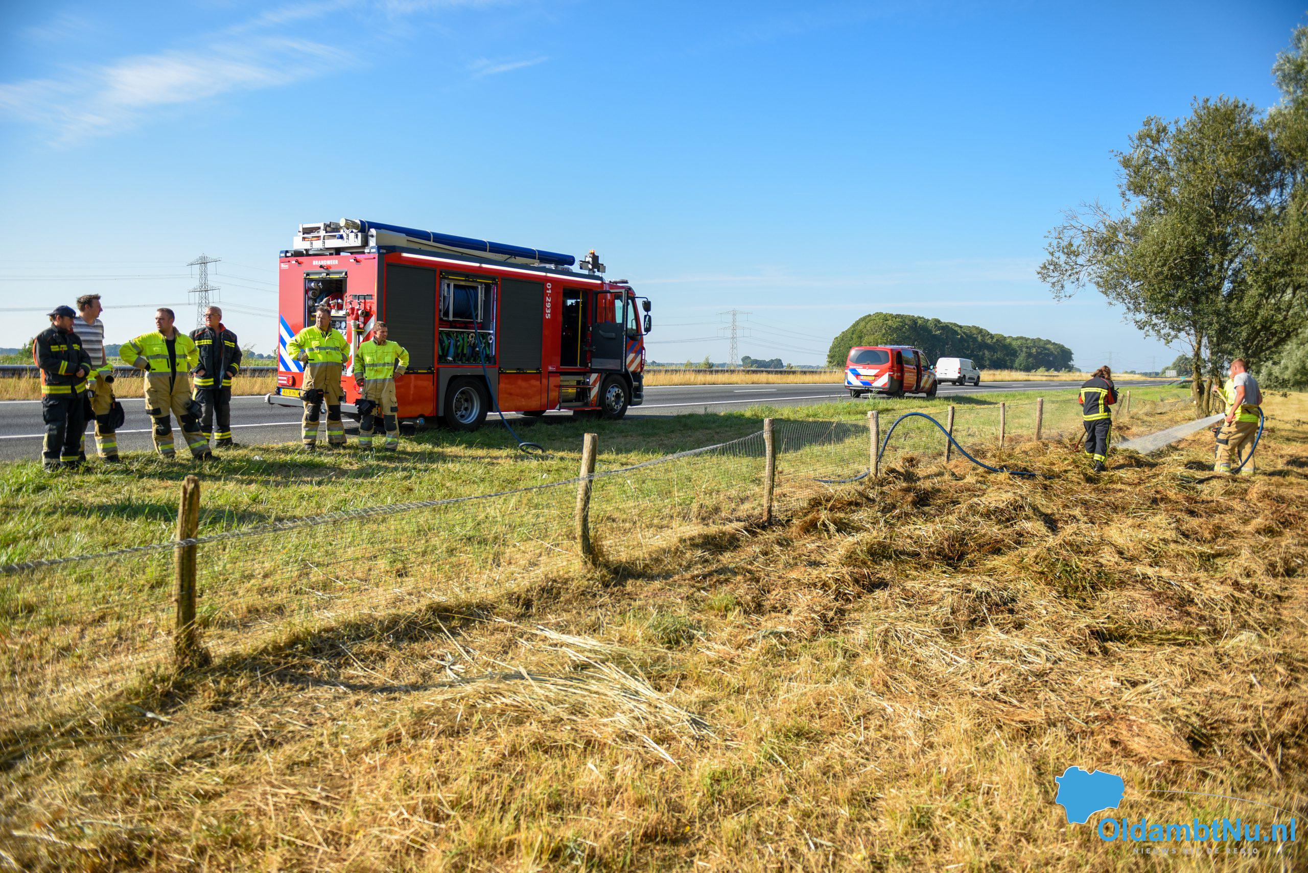 Ter plaatse bleek het te gaan om het zelfde brandje als een paar uur er voor. Parallel aan de A7 stonden hooibalen te smeulen. De brandweer heeft ze uit elkaar getrokken en het brandje geblust. Bij de 2e melding bleek het dat de uit elkaar getrokken balen weer waren begonnen met smeulen. De brandweerlieden hebben het opnieuw uit elkaar getrokken en goed nat gemaakt waarna ze retour kazerne konden.