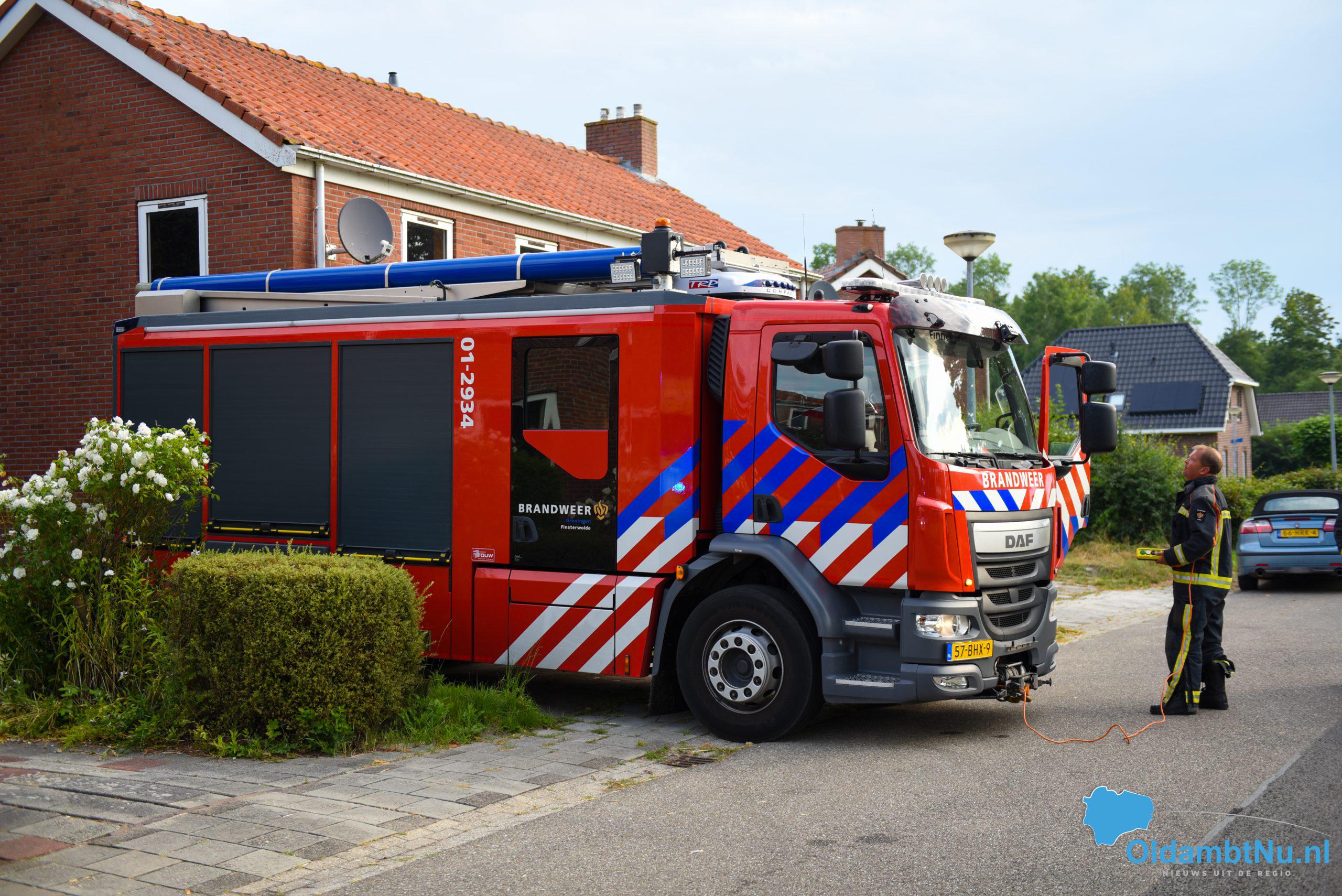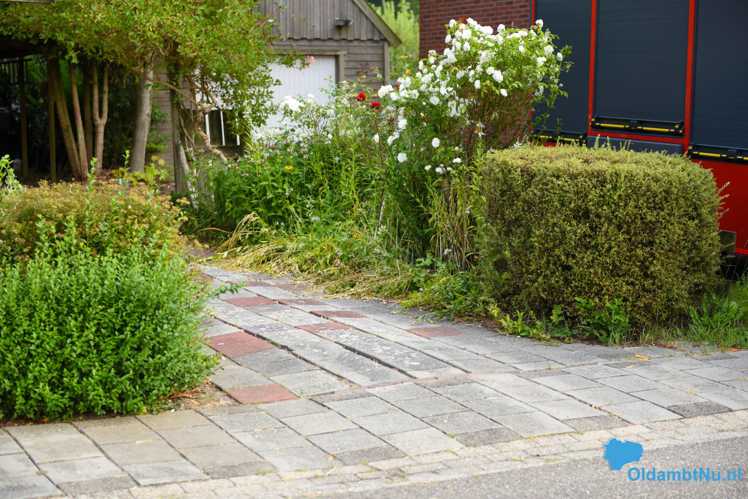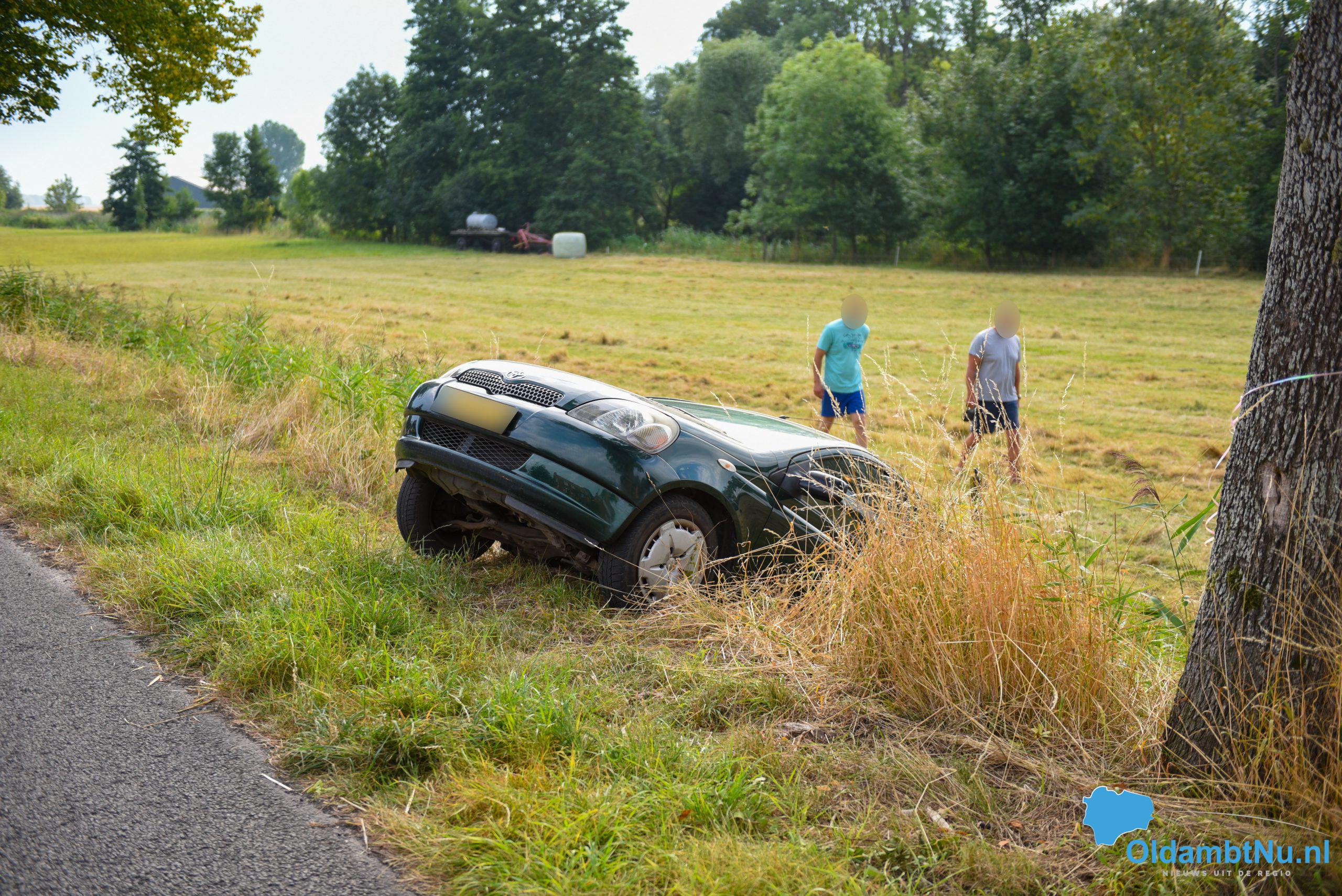 De vrouw blijkt, bij het achteruitrijden van haar oprit, de greppel te zijn in gereden.