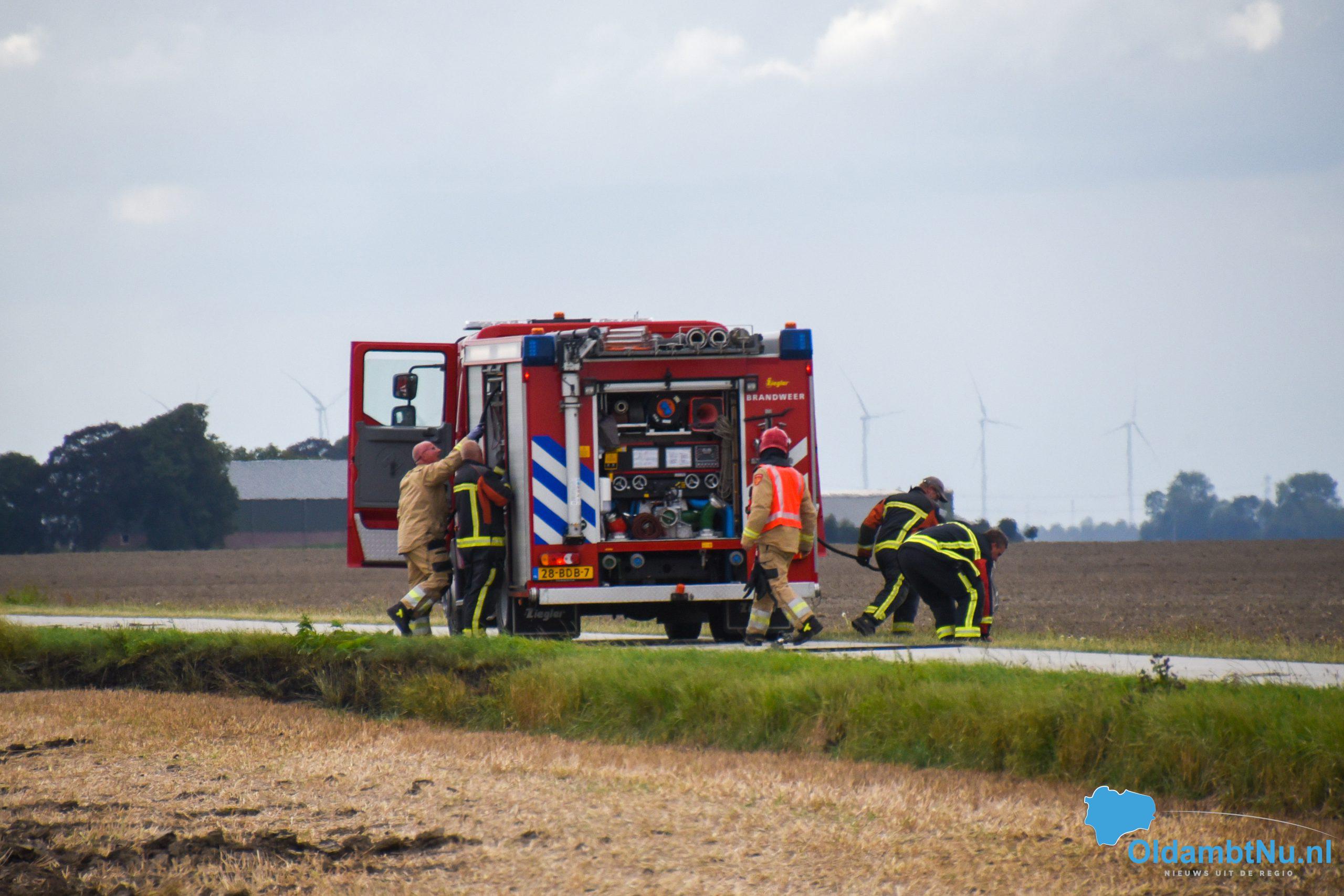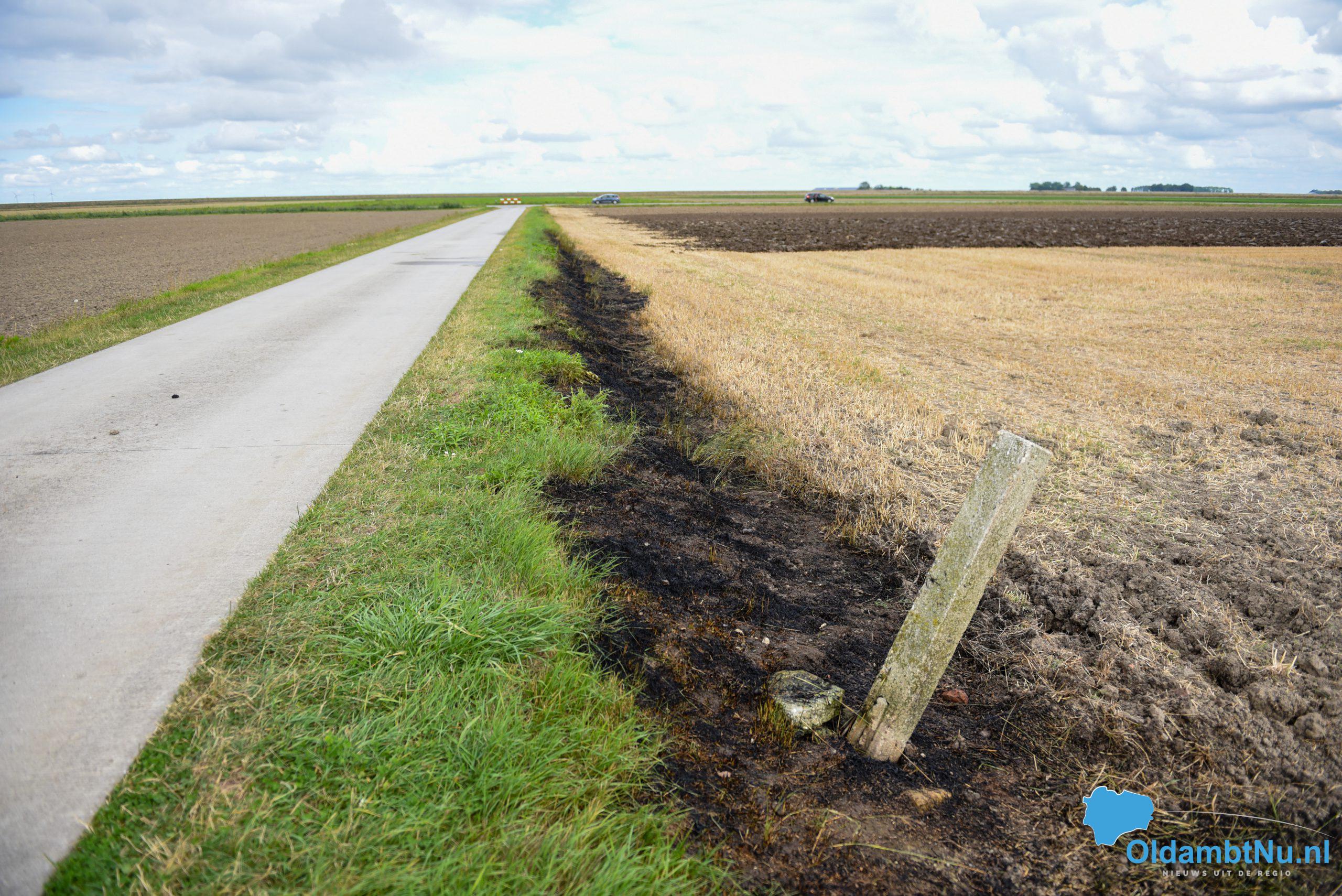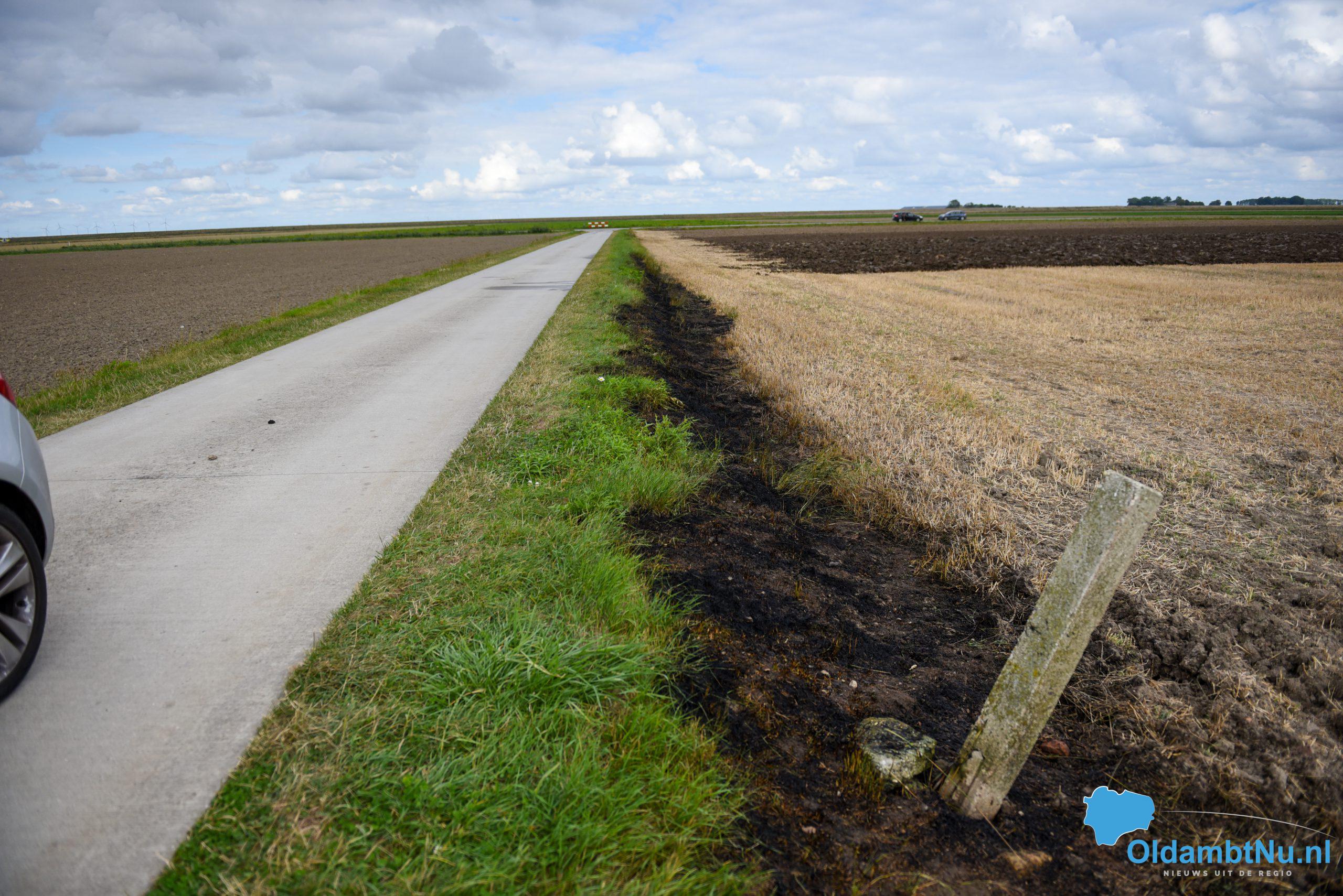 Brandweer blust bermbrand in Reiderwolderpolder