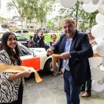 Voor de ingang hing een lintje die de wethouder met een gouden schaar vakkundig heeft doorgeknipt. Dit onder toeziend oog van vrienden, familie en zakelijke klanten.