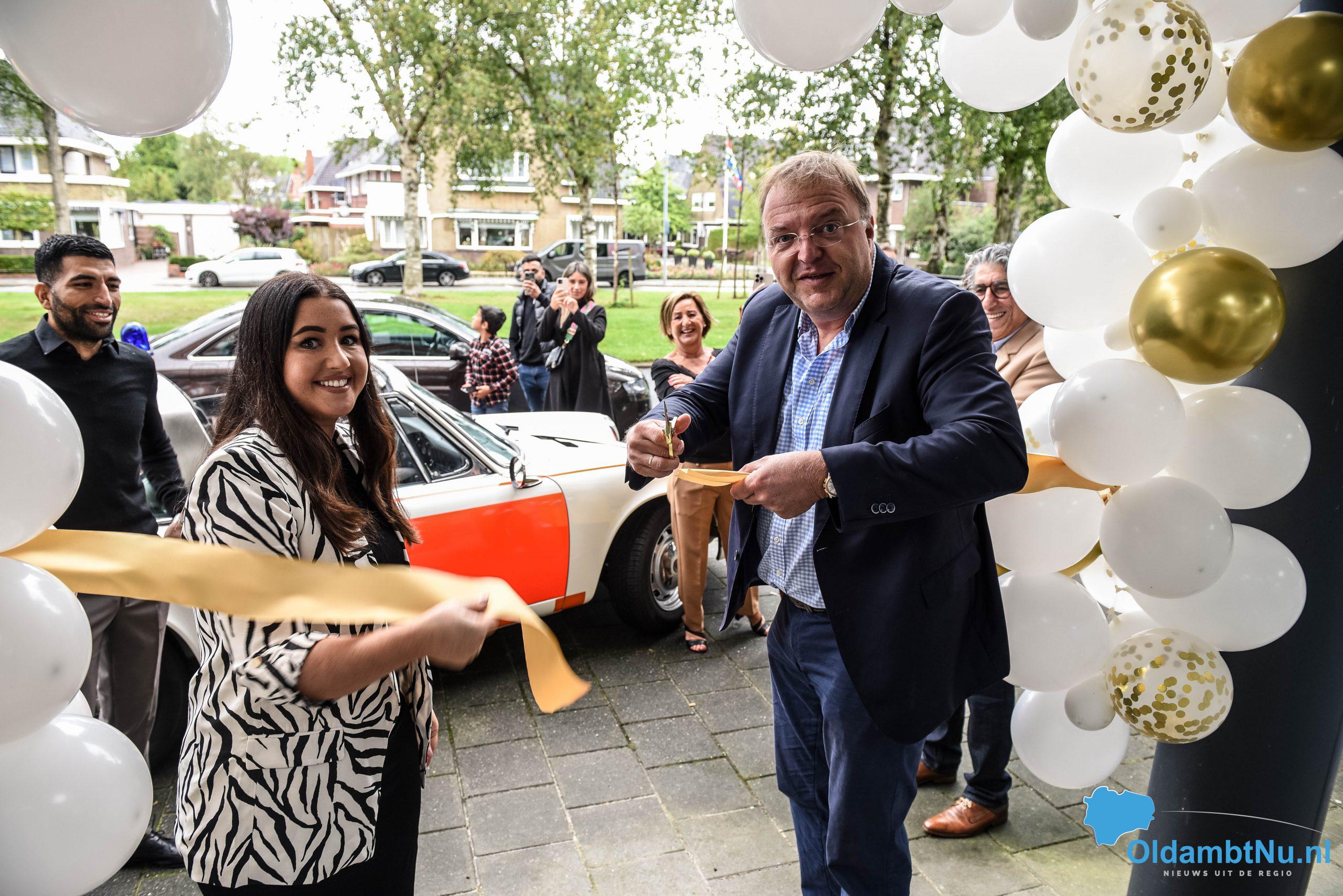 Voor de ingang hing een lintje die de wethouder met een gouden schaar vakkundig heeft doorgeknipt. Dit onder toeziend oog van vrienden, familie en zakelijke klanten.