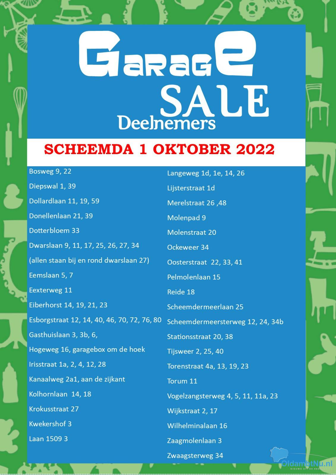 Er is flink animo voor het verkopen van oude spullen vanuit de eigen garage of oprit. De organisatie heeft een deelnemerslijst gepubliceerd en een poster beschikbaar gesteld om aan te geven dat men mee doet aan de garagesale. Ook zijn de deelnemers digitaal in te zien.